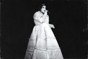 During Spit, she notices someone in the front row and says they were at her very first Paris show. She holds their hand while singing, then stops the music. She wants to end with something special here. Diva. Princess.