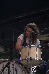 Le set d’Astral Bakers a débuté dans une ambiance douce et chaleureuse. Composé notamment de Zoé à la batterie et de Théodora à la basse, ce duo féminin a captivé le public avec une atmosphère réconfortante.