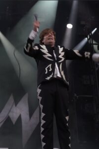 After Frank Carter‘s whirlwind of energy, The Hives took over with their own brand of explosive energy. Although I missed the first track, the set quickly established itself as one of the day’s highlights. Dressed in black suits with white lightning bolts, the band captivated the crowd from the start of “Main Offender,” with Howlin’ Pelle Almqvist, the lead singer, getting close to the audience by descending the stage stairs to sing right next to the fans.