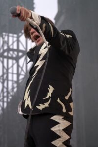 Après le tourbillon d’énergie de Frank Carter, The Hives ont pris le relais avec leur propre marque d’énergie explosive. Bien que j’aie manqué le premier titre, le set s’est rapidement imposé comme l’un des moments forts de la journée. Vêtus de costumes noirs avec des éclairs blancs, le groupe a captivé le public dès le début de « Main Offender », avec Howlin’ Pelle Almqvist, le chanteur, s’est rapproché de la foule en descendant les escaliers de la scène, pour chanter au plus près des fans.
