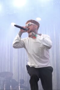 “Honey” continued on this high note, with Frank leading the crowd in a singalong, which they eagerly joined, before launching into “Brambles,” a track that had the crowd jumping, clapping, and moving wildly while shouting the lyrics. However, during “My Town,” the mood was briefly dampened when Frank asked for the crowd surfers to stop after someone got kicked in the head, showing his concern for his audience’s safety.