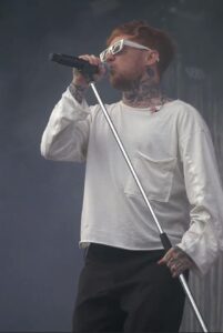 Le décor était simple mais efficace : une toile argentée en fond de scène, mettant l’accent sur la musique et l’énergie brute de Frank Carter et de son groupe, The Rattlesnakes. Dès le premier titre, « Can I Take You Home », les basses puissantes ont littéralement soulevé l’estomac des spectateurs, offrant une entrée en matière explosive. Ce morceau a instantanément mis la foule dans l’ambiance, laissant présager un set intense.
