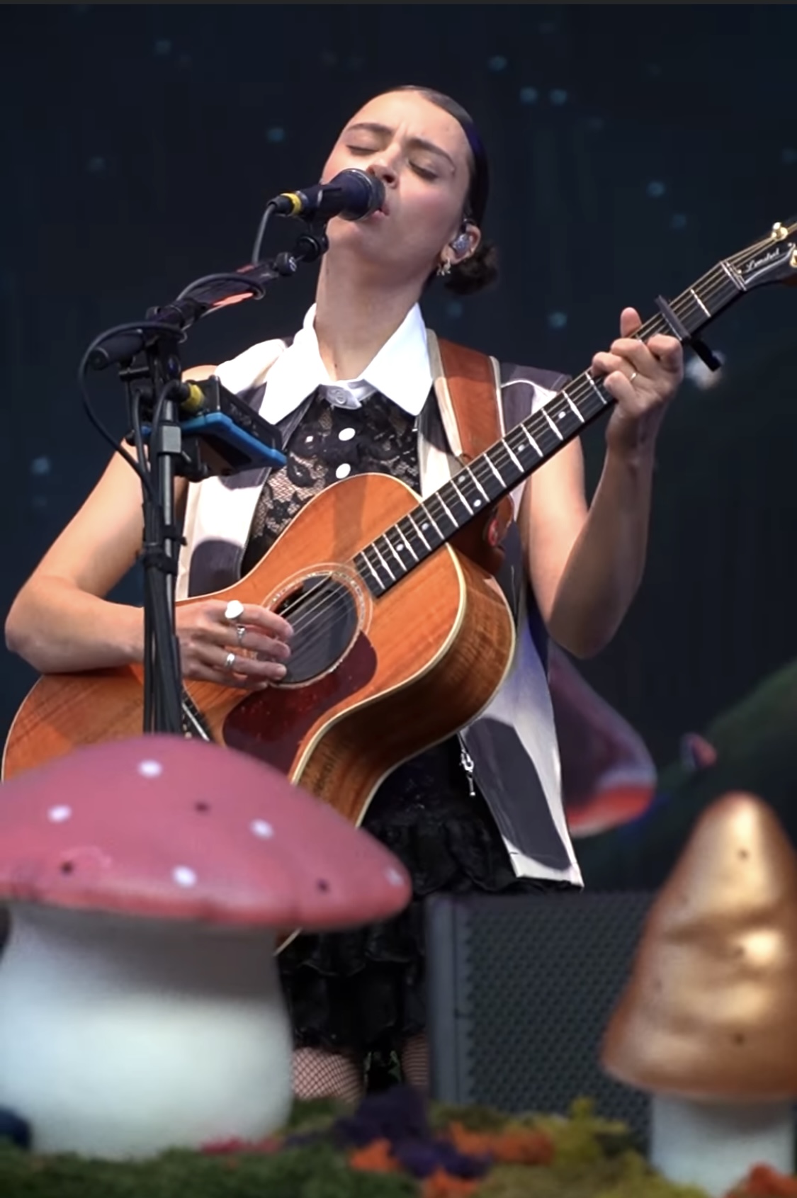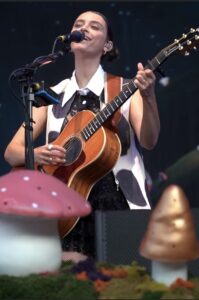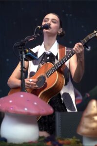 Sur le plan musical, Pomme a offert un moment magique au public. Bien que sa performance n’ait pas été la première de la journée, elle a su captiver l’attention de la foule dès les premières notes de « Nelly ». Le décor enchanteur, composé de verdure et de champignons géants, a renforcé l’atmosphère féerique. Pomme a enchaîné avec des titres comme « Ceux qui rêvent » et « Bleu », avant qu’un malaise dans la foule ne vienne interrompre le concert. Toujours souriante, Pomme a géré la situation avec grâce, chantant à capella un titre de Céline Dion pour maintenir l’ambiance. Le set s’est conclu avec « Une minute », devant un public dense et enthousiaste.