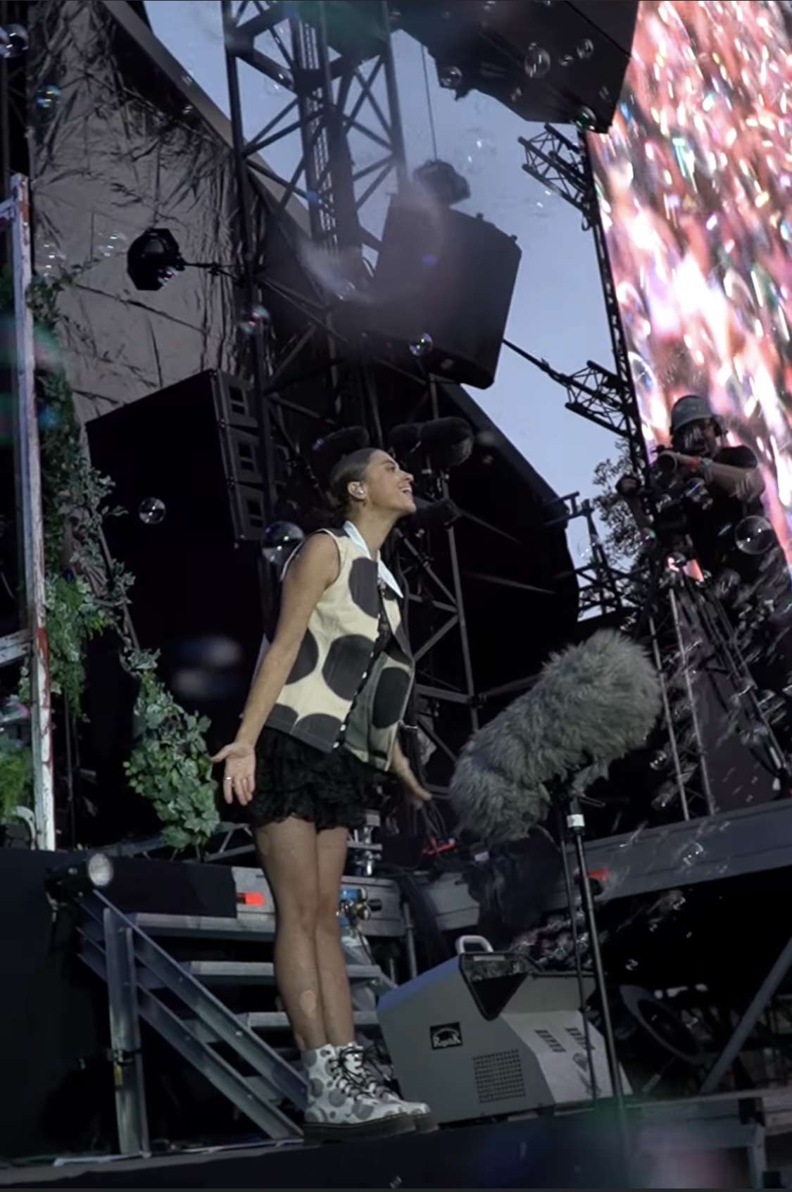 The performance continued to captivate with “Black Balloon,” where the crowd clapped along in perfect harmony with the song while Alison took up the guitar herself. During “Last Day of Magic,” she set the guitar aside to ask the audience how they were feeling, creating a moment of connection before launching into “My Girls My Girls” under pouring rain, which did nothing to dampen the crowd’s energy.
