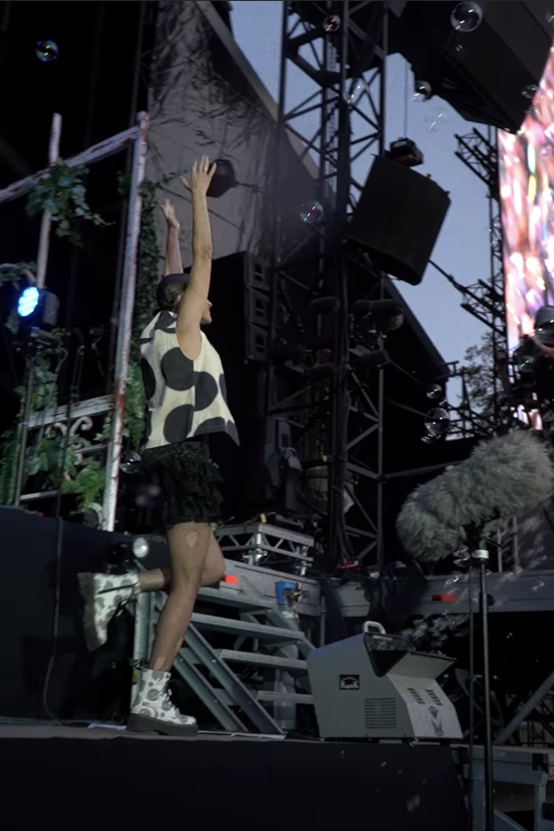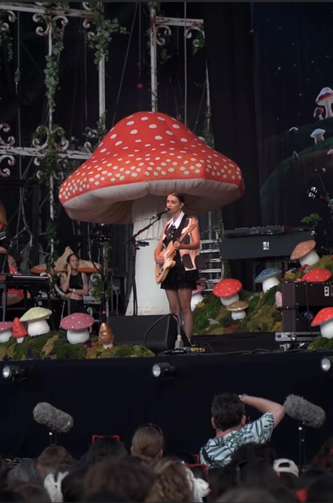 Musically, Pomme delivered a magical moment to the crowd. Although her performance wasn’t the first of the day, she managed to captivate the audience from the first notes of “Nelly.” The enchanting set design, featuring greenery and giant mushrooms, added to the fairytale atmosphere. Pomme followed with songs like “Ceux qui rêvent” and “Bleu,” before a brief disturbance in the crowd interrupted the concert. Ever-smiling, Pomme handled the situation gracefully, singing an a cappella version of a Céline Dion song to keep the vibe going. The set concluded with “Une minute,” in front of a dense and enthusiastic audience.