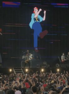 Visual effects added to the party, with animated projections during “Make It All Right” and a shower of blue confetti at the end of the song. The band then launched into “In the Hall of the Mountain King” while the pit literally started rowing on the floor. a moment visually enhanced by animated cartoons projected behind them.