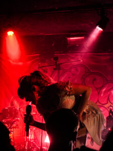 Nobody Wants To Be You passe à toute vitesse, puis sur Eternal December, elle raconte qu’elle est italienne mais qu’elle vit en Angleterre depuis dix ans, avant de balancer le morceau. Mitsuko arrive, et c’est sûrement ma préférée du set. Elle réclame un circle pit, le public s’emballe et le guitariste se place carrément au milieu du cercle. Sur Stop the Party, elle insiste sur l’importance du titre pour eux et demande à tout le monde de bouger, de jumper, et la salle s’exécute. À la fin, le guitariste lâche sa gratte pour marteler une grosse caisse comme un fou furieux. Bloodbath secoue encore un peu plus la fosse, avant que Blossom ne clôture le set. Elle lance un grand “faites du bruit pour vous-mêmes !” avant de remercier le public plusieurs fois et de demander une photo souvenir avec toute la salle. Lake Malice a laissé le Backstage en feu.