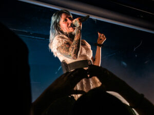 Pink Whitney stood out as one of my personal highlights of the set. She followed it up with Mutual Masturbation, getting the crowd to scream for Lake Malice, for her ‘bimbros,’ her guitarist, and her drummer. The pit went wild as soon as the first ‘shut the fuck up’ dropped. On Barbie & Ken, she spoke about family while fans threw heart signs her way. Spotting it was a fan’s birthday, she wished them a happy one and even tried singing it in French with the audience’s help. The track turned into a duet with her guitarist Daniel, and with the birthday fan themselves.