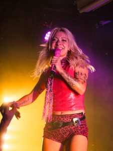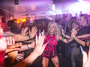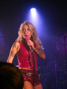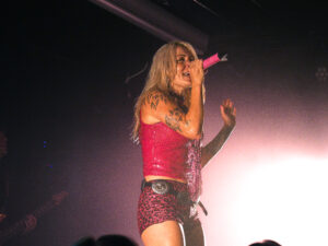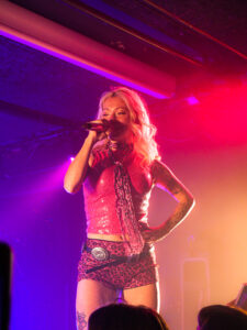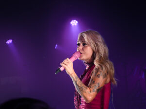 Mais le meilleur était encore à venir. L’entrée de Scene Queen sur BDSM plonge immédiatement la salle dans la folie. Sur Pink Push-Up Bra, elle hurle “Vous êtes prêts ??!!!” et tout le monde répond en chœur. Finger démarre avec un “Bonjour Paris !” en français, et elle se dit reconnaissante d’être ici pour sa première fois en tête d’affiche, avant de demander si certaines filles sont venues parce que les hommes les rendent folles. La salle éclate de rires et de mains levées. Sur Pink Panther, elle balance des “Thank you so much, you rock, I love you !”, puis, dès la petite musique iconique, la foule hurle et chante, créant une ambiance incroyable.