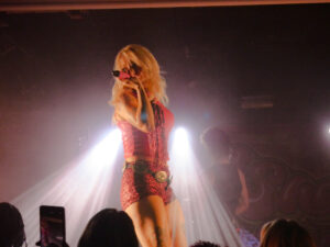 Avec Platform Shoes, elle lance un discours engagé : soyez fiers de qui vous êtes, trans rights are human rights, et elle explique que c’est pour lutter contre la misogynie et la transphobie qu’elle fait de la musique militante. Elle joue une nouvelle chanson et fait danser tout le monde. Sur Pink G-String, elle demande à la salle de secouer les fesses, ambiance survoltée garantie. Avant MILF, elle confie qu’elle n’aurait jamais imaginé partir en tournée en commençant la musique et se dit reconnaissante, puis dédie le morceau aux hot moms, aux milfs, sous les cris de la fosse.