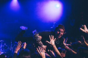 “Hands up!” hurle Benny avant de se jeter directement en crowd surf. On est à peine à la première chanson, et c’est déjà le chaos total. Dans le public, tout le monde applaudit en rythme, comme un seul corps en fusion avec le groupe.