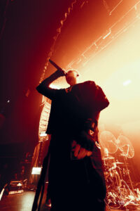 Le groupe ne s’arrête pas là et multiplie les moments marquants. Sur Boomerang, la chanteuse d’Halflives les rejoint pour un duo puissant, le chanteur filmant la fosse en train de chanter. Un autre moment inoubliable survient lorsque le frontman et le guitariste descendent dans la foule pour une performance acoustique. La fosse, illuminée par les téléphones des fans, vibre d’une énergie particulière.