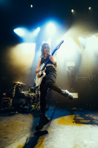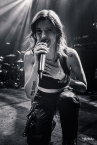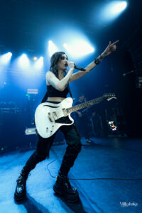 Les morceaux s’enchaînent, et le public se laisse porter par les rythmes entraînants et la voix puissante de la chanteuse. Un des moments marquants est leur reprise de The Emptiness Machine de Linkin Park, où elle demande au public d’allumer leurs téléphones, créant une ambiance magique. La chanson Snake se distingue particulièrement, la chanteuse partageant un message touchant sur l’acceptation de ses démons intérieurs.