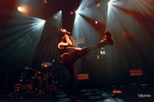 Le souci du détail est frappant : les visuels, les lumières et même les couleurs du masque du batteur s’harmonisent avec les morceaux joués. Glow in the Dark et Venom plongent le public dans une ambiance cyberpunk, tandis que Heroes Are Calling et Higher font sauter toute la fosse. Rarement une performance live a été aussi immersive.