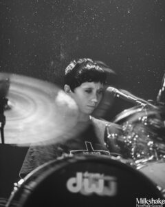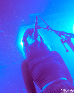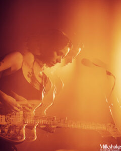 The band unfolds a cohesive, dreamy shoegaze sound, boosted by a great overall band dynamic. The drummer is absolutely on fire, giving the songs real momentum. Purple One quickly stands out as one of the crowd’s favorites: fuzzy guitars, a fully settled vibe, and the band carrying on in that same dreamy lane. The musicians join in on the back vocals, adding even more haze to the set. Reverb is everywhere. Another crowd-pleasing moment highlights the lead guitar, totally on point, captivating the room. The band mentions they’re from Minnesota and that this is their first tour outside the US. On certain passages, Mandy brings a more aggressive edge, much to the audience’s delight.