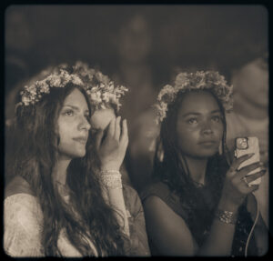 Dans les premiers rangs, on constate que Sydney Rose a déjà des fidèles. Toutes en tenue de longues robes blanches et petites couronnes de fleurs, elles se fondent à merveille avec le décor et l’ambiance de la soirée. En effet, l’atmosphère dégagée ce soir est un mélange onirique et lumineux. C’est très beau, agréable et communicatif.