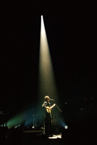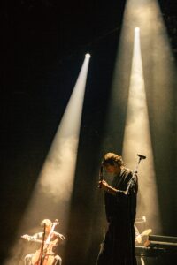 Quelques minutes plus tard, Tamino revient pour le rappel. Il entame “Habibi”, introduite par un solo de violoncelle absolument incroyable, avant que sa voix ne s’élève et fasse vibrer chaque recoin de la salle. Puis viennent “Dissolve” et “Smile”, deux titres plus dynamiques qui terminent le concert sur une énergie différente : les lumières explosent d’un coup avec la batterie, contraste parfait avec la douceur du début.