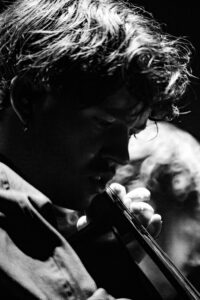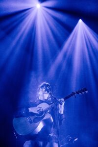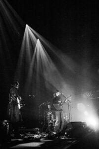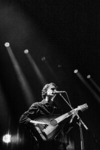 The evening begins gently with Searows. Three of them take the stage — one on drums, two on guitar. Their calm, laid-back sound instantly sets a soothing atmosphere, perfectly aligned with Tamino’s world. It’s a soft, understated opening, filled with warm acoustic tones and hushed textures. The last song, performed solo on guitar, closes the first set in respectful, almost sacred silence.