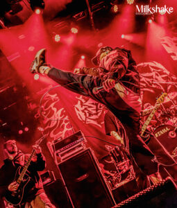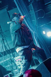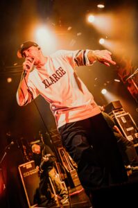 Le rythme ne faiblit pas avec “Spit My Rage”, un classique qui déclenche une vague de stage dives, suivie d’une version survoltée de “Stick Tight”, où le chanteur de Combust monte sur scène pour feat et un « blegh » mémorable. Ce moment unique galvanise encore plus la foule, qui répond par des slams incessants et des hurlements de joie.