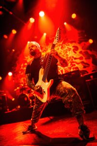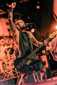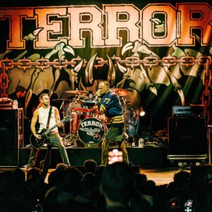Alors que “Pain Into Power” démarre, Terror démontre qu’ils ne sont pas prêts à ralentir. Le titre résonne comme un hymne de rage et d’énergie brute, entraînant une série de slams qui transforment la scène en champ de bataille. La scène étant devenue glissante, Vogel avertit ses musiciens : « Faites attention, la scène est mouillée, ne vous blessez pas ! » Ce souci du détail n’entame en rien leur énergie débridée, et ils enchaînent avec “Return to Strength” et “Can’t Help But Hate”, où la fosse atteint un niveau de chaos rarement vu.