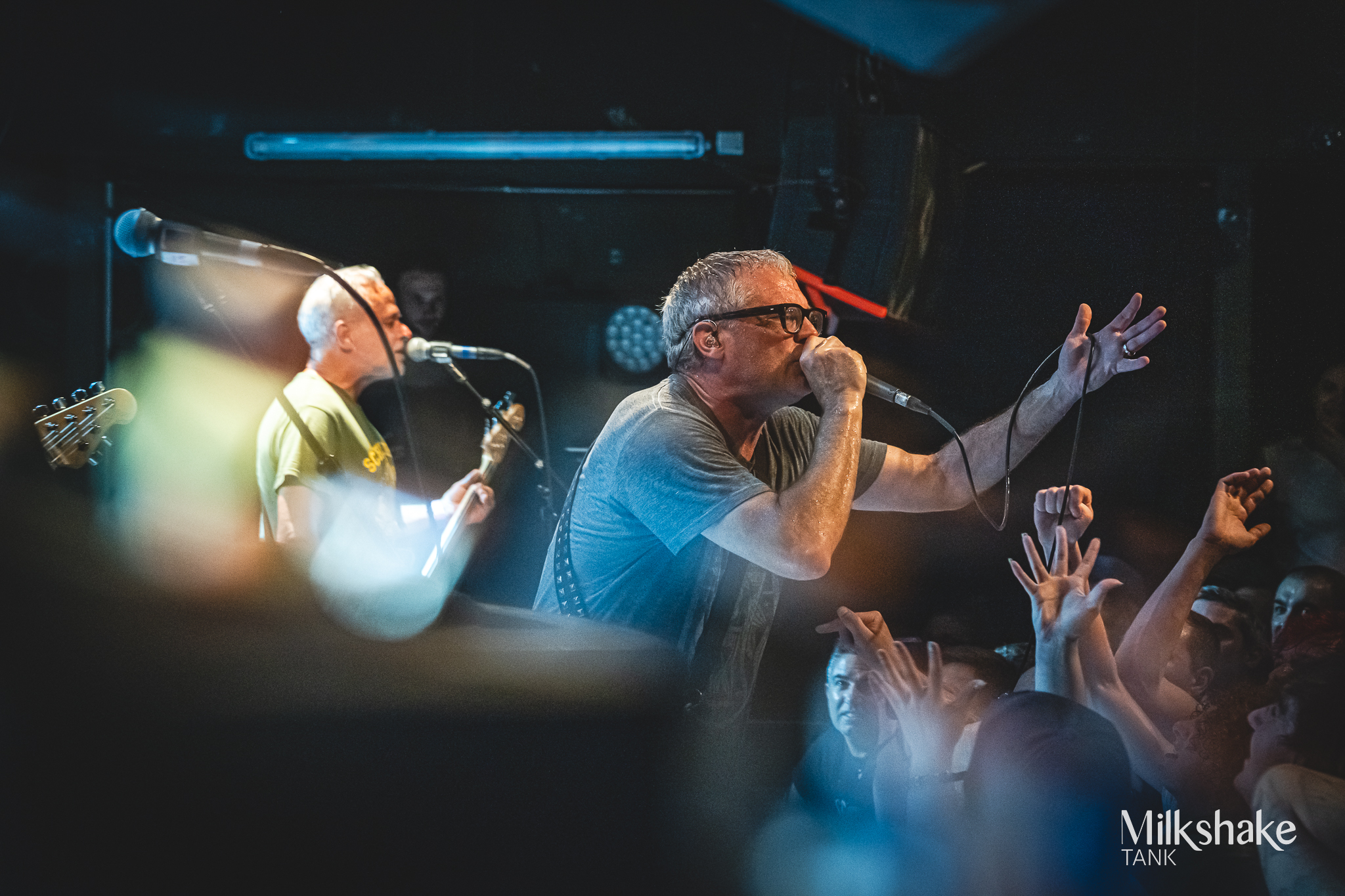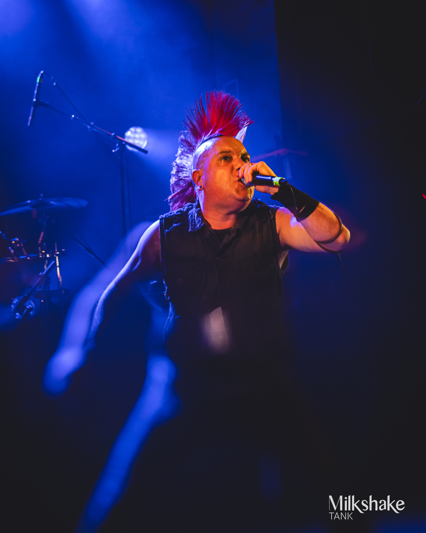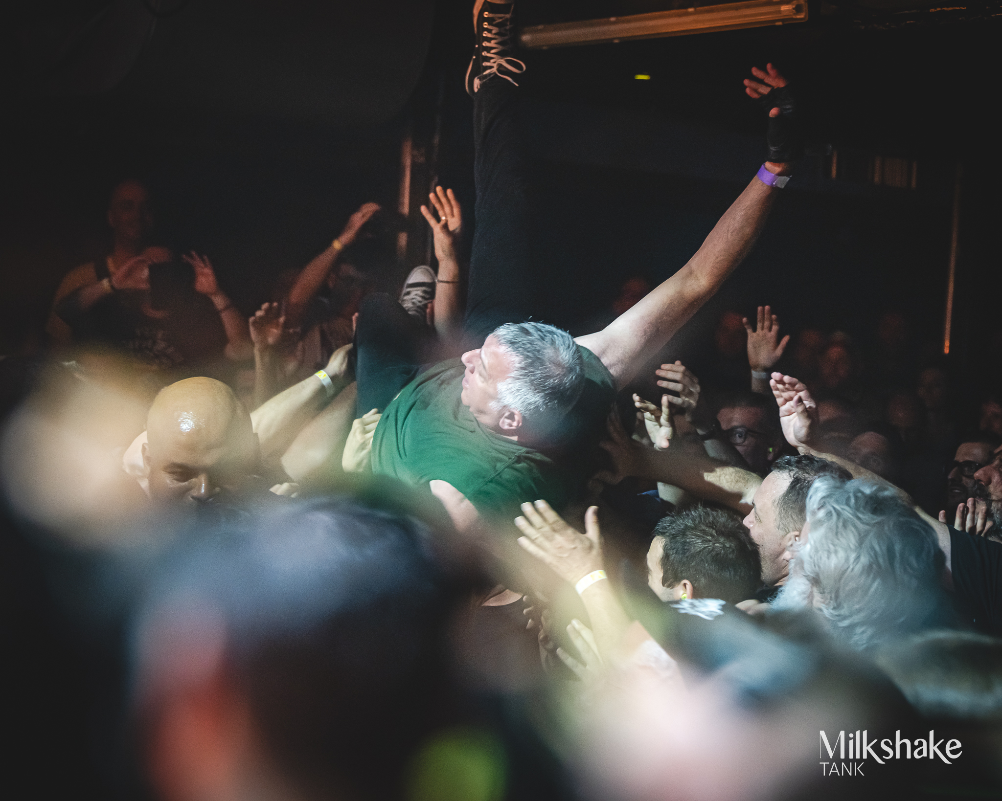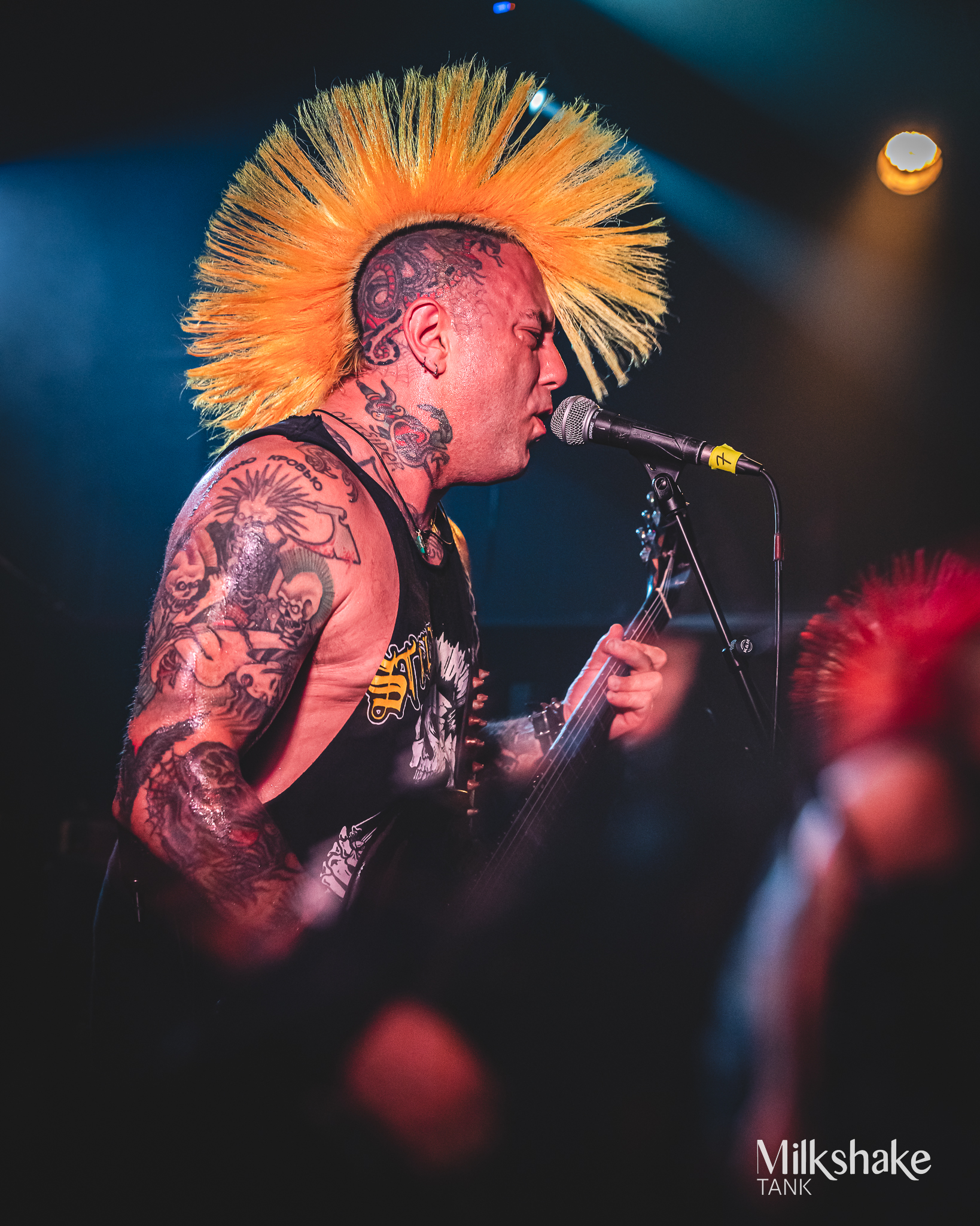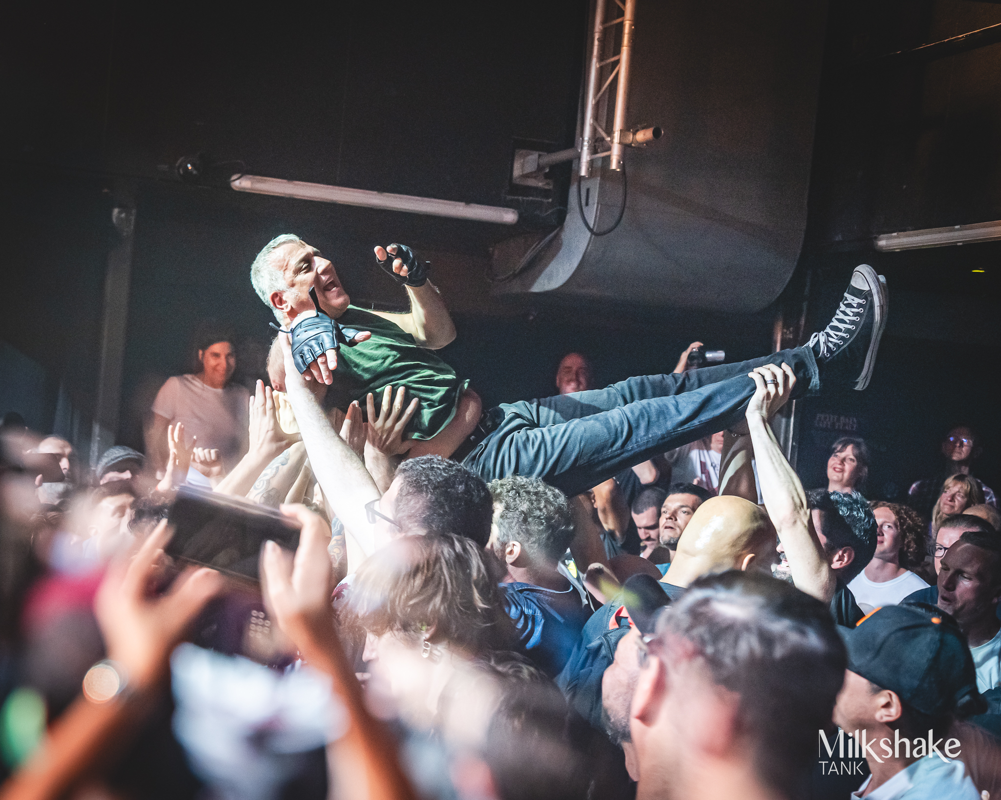 During “Stronger,” the guitarist Yacko was sweating so much that it was a wonder how he didn’t lose his pick, and Cédric dedicated the song to The Casualties and all the punks, diving into the mosh pit once again. For “Blablast,” Cédric urged the audience to go wild. The singer of The Casualties, David, was on the side, taking in the show. With “Join the Night,” Cédric dedicated the song to Manux and his crew, calling for chaos. “Punchline” saw a circle pit initiated by Cédric’s request, and it featured the first crowd surf of the evening.