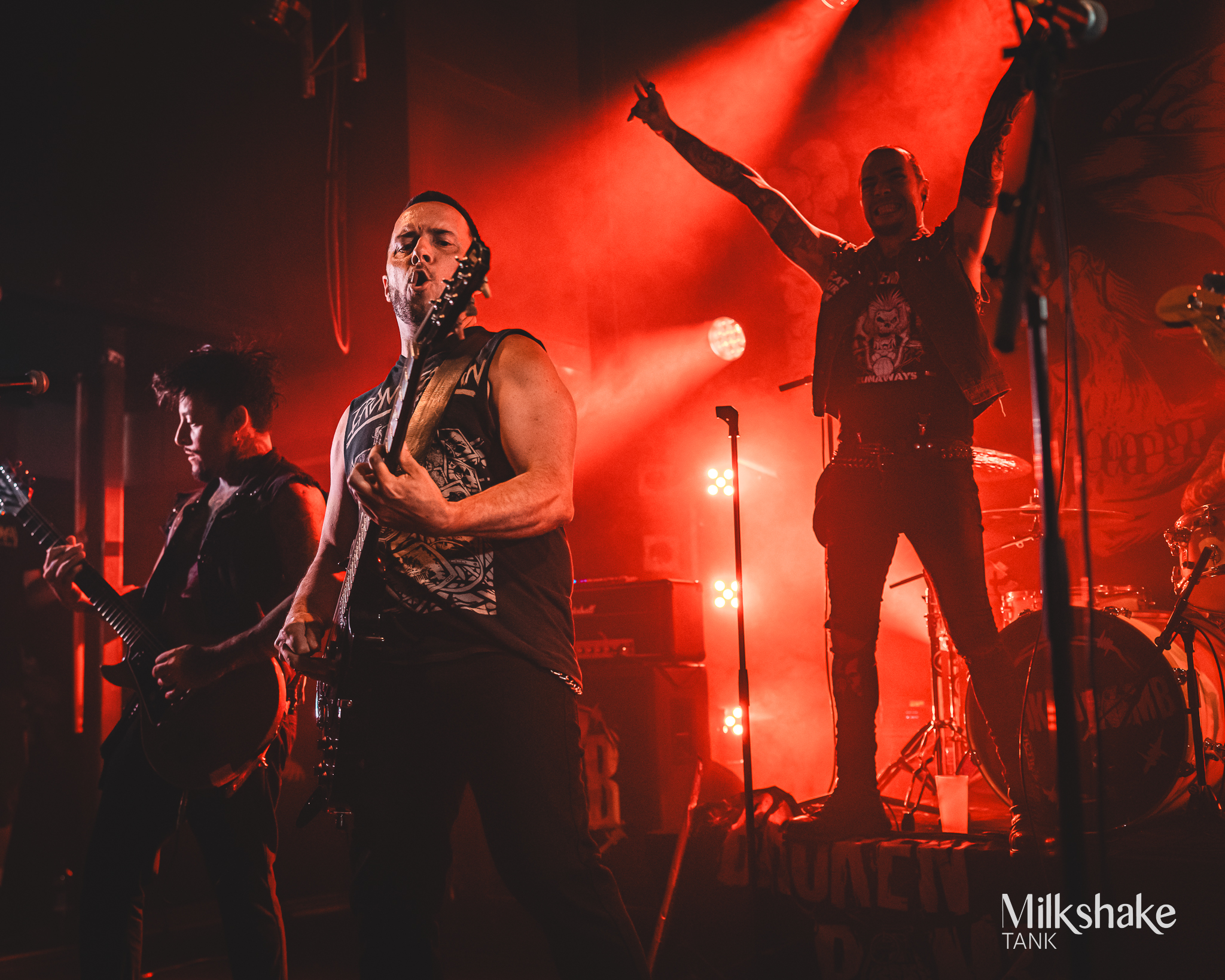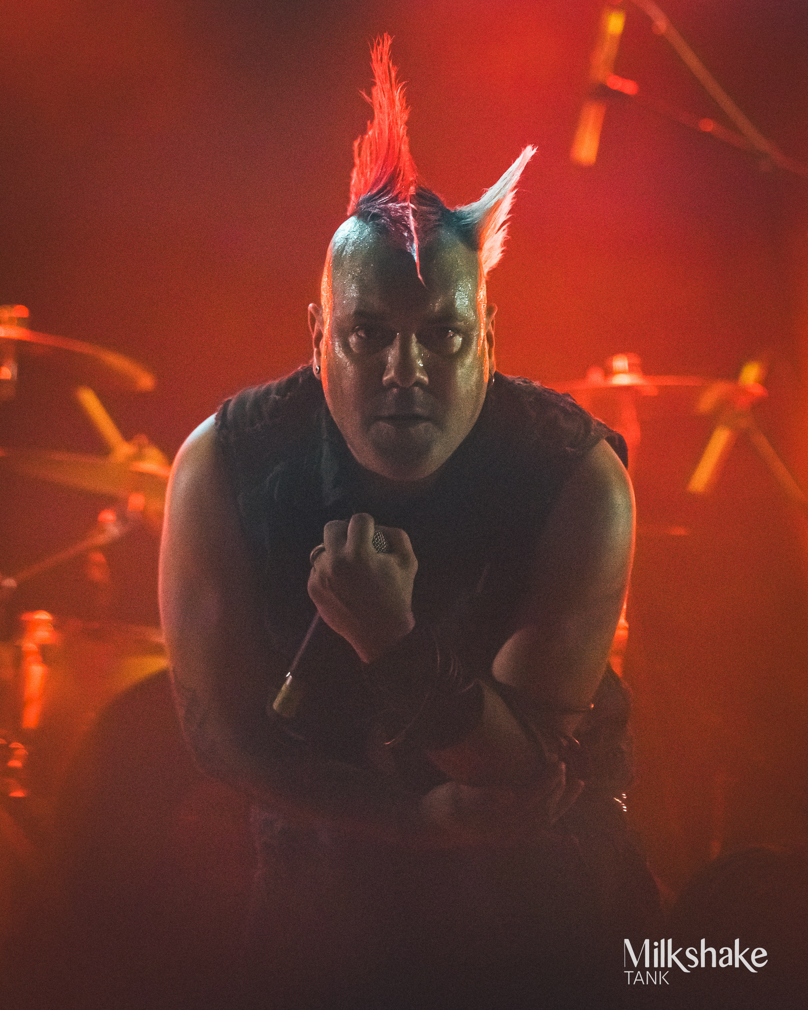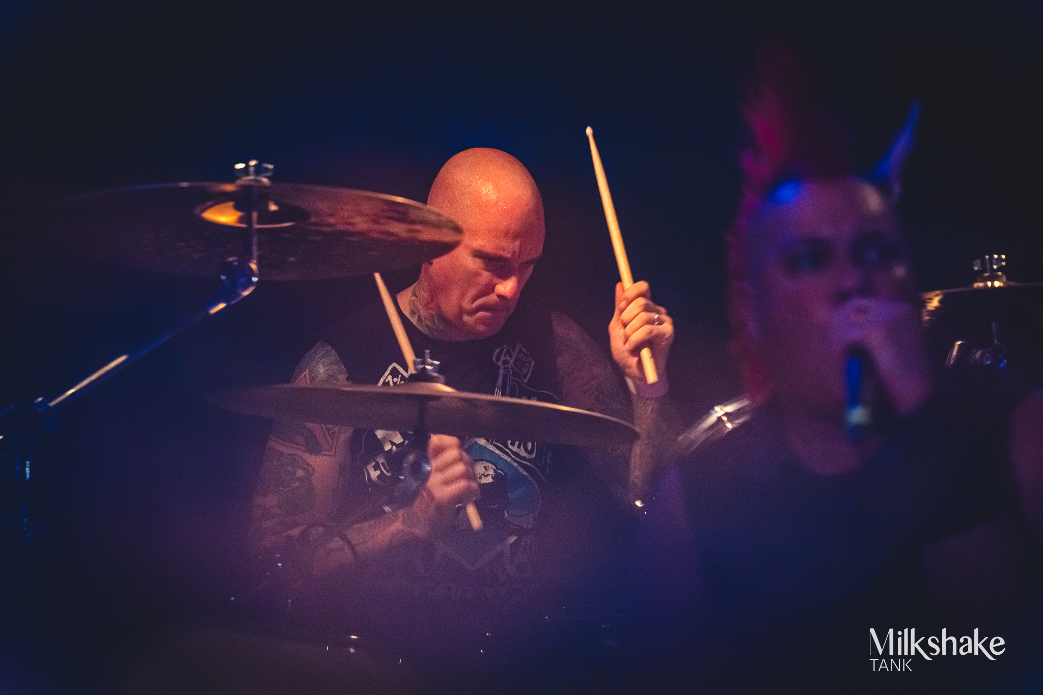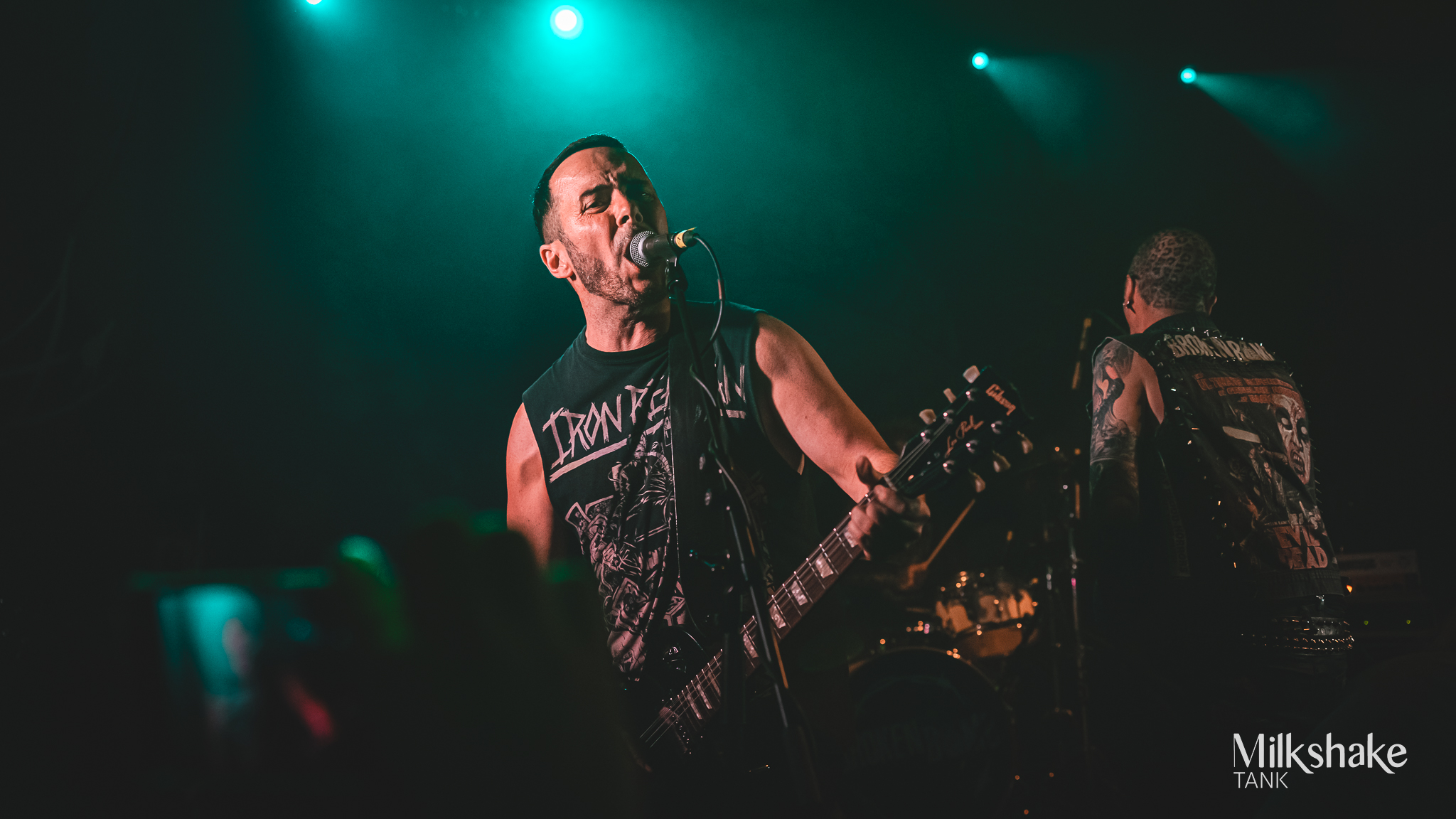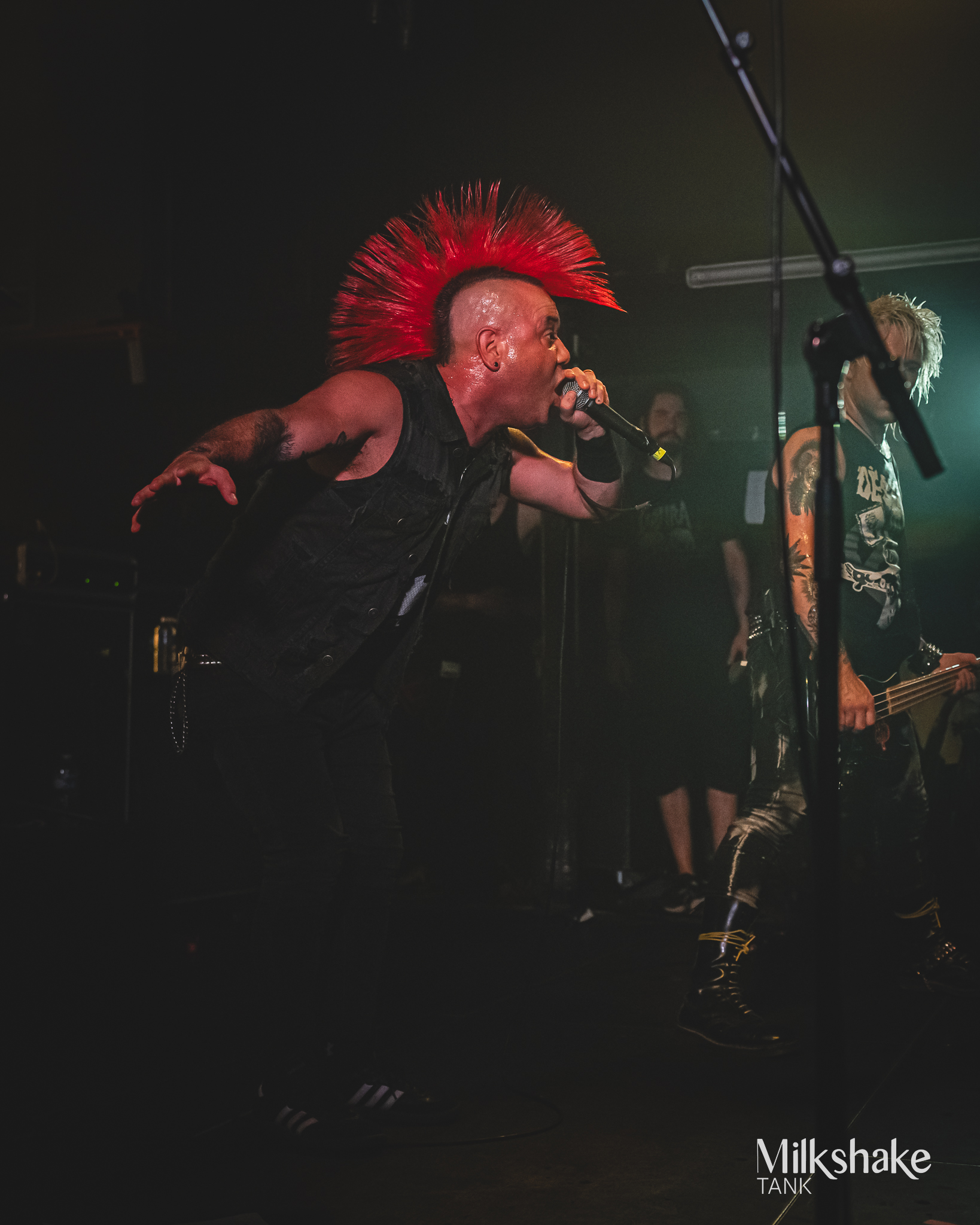 During “Stronger,” the guitarist Yacko was sweating so much that it was a wonder how he didn’t lose his pick, and Cédric dedicated the song to The Casualties and all the punks, diving into the mosh pit once again. For “Blablast,” Cédric urged the audience to go wild. The singer of The Casualties, David, was on the side, taking in the show. With “Join the Night,” Cédric dedicated the song to Manux and his crew, calling for chaos. “Punchline” saw a circle pit initiated by Cédric’s request, and it featured the first crowd surf of the evening.