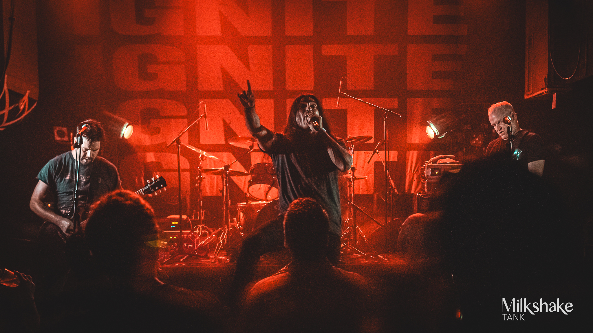 Le groupe de hardcore américain Ignite a continué cette soirée du Paris punk rock summer avec une intro musicale de western. Dès le titre « Veteran », la fosse bouge dans tous les sens et hurle les paroles. Sur « Poverty », le chanteur Zoli passe le micro au public, qui hurle les paroles. Zoli présente le groupe : « On est Ignite et on vient de Californie, and this is Ash. » Malgré un problème de câble de guitare, le groupe reste imperturbable.