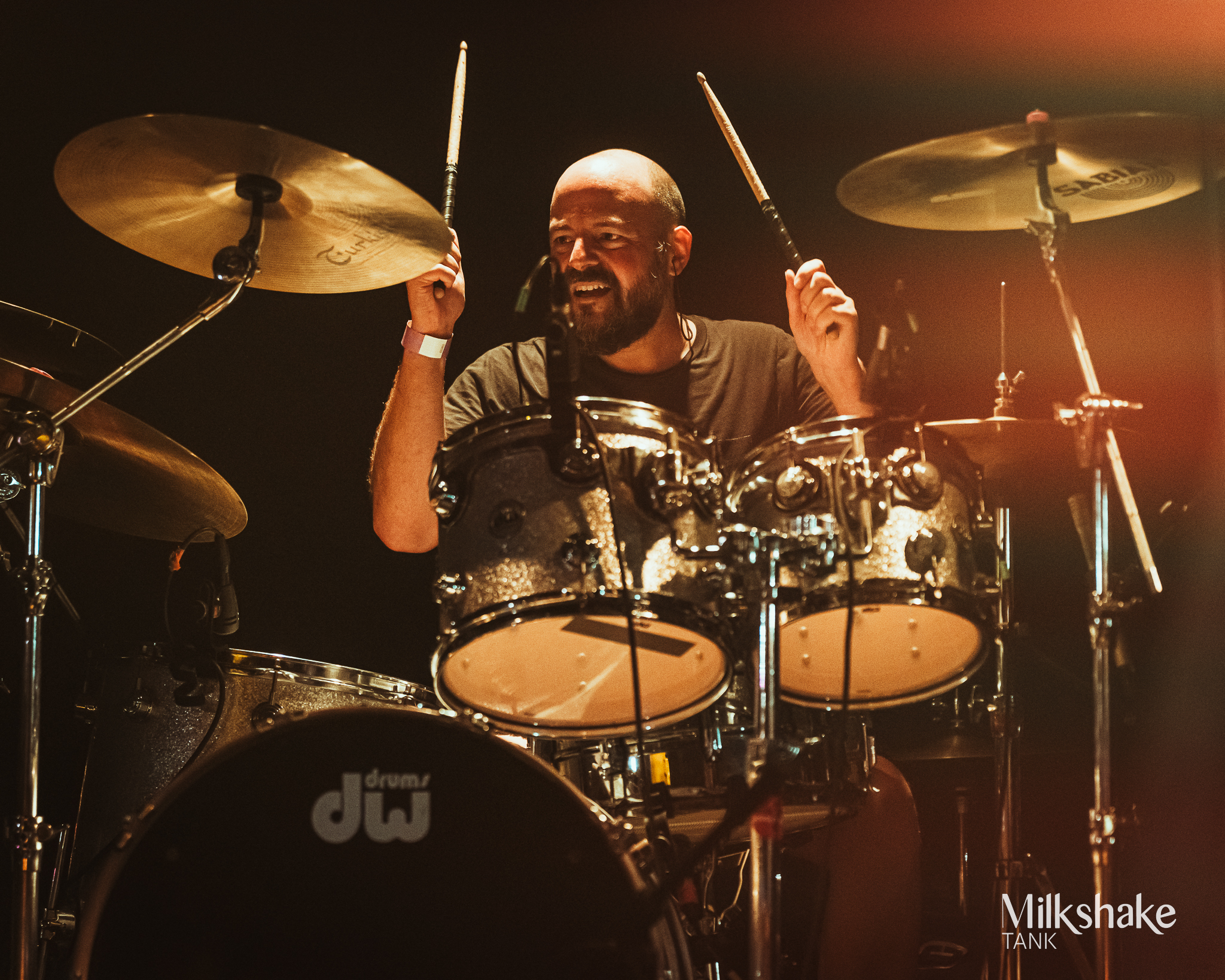 Avec « Embrace », ils font monter Manux sur scène pour le remercier, et tout le monde applaudit l’organisation. Malgré le manque de temps pour jouer « Fear », ils enchaînent sur un set énergique.