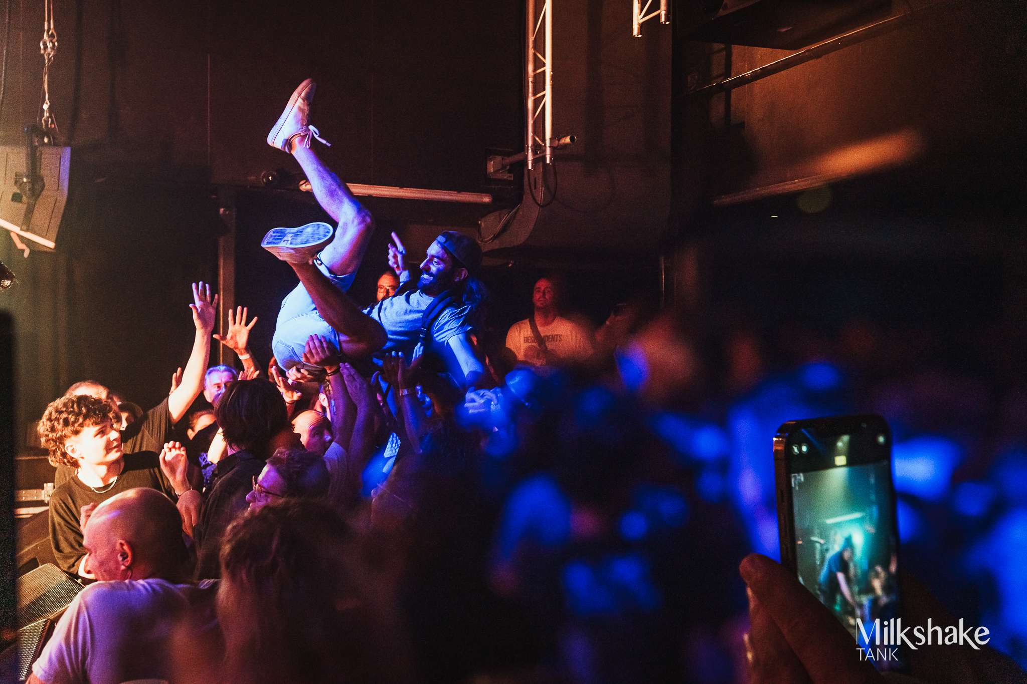 «On Paper» a intensifié la bousculade dans la fosse, avec une chaleur atteignant des sommets. Milo a souvent tendu le micro au public, qui ne demandait qu’à hurler dedans. Le chanteur s’est même fait porter par la foule tout en chantant sur «Clean Sheets», une scène hallucinante. «Everything Sux» et «Nothing With You» ont maintenu l’énergie à son comble, avec des slams et des sauts incessants.