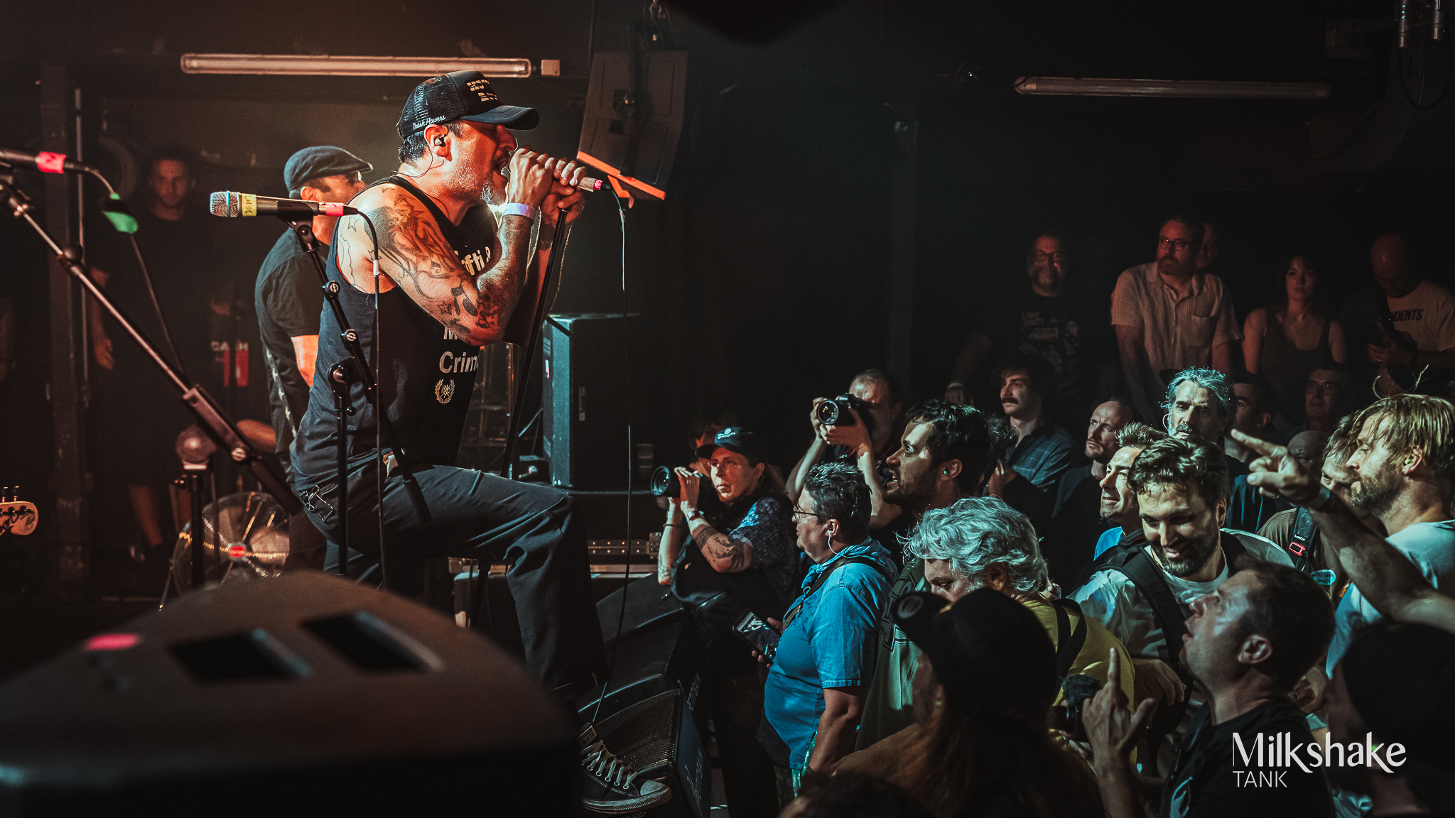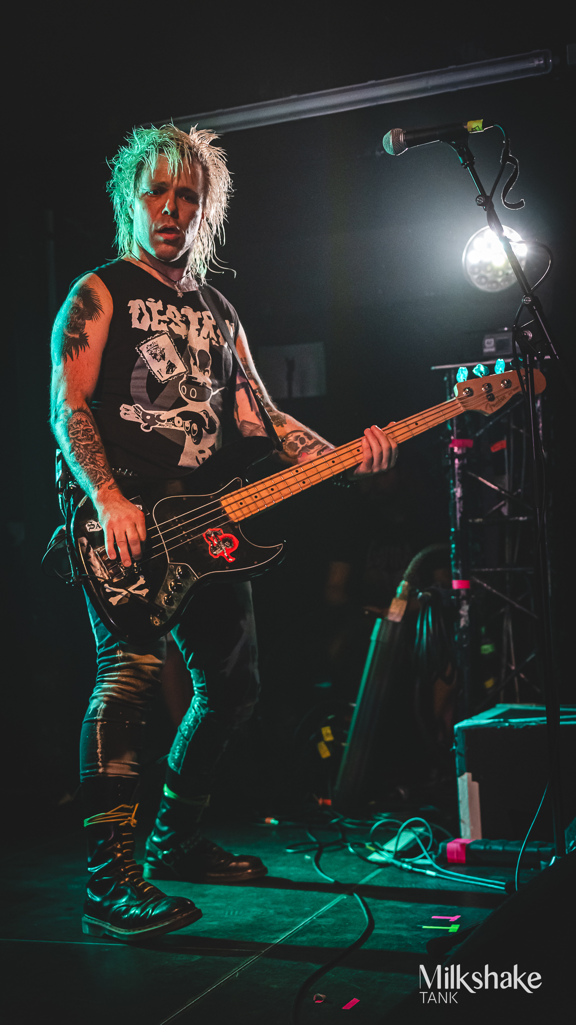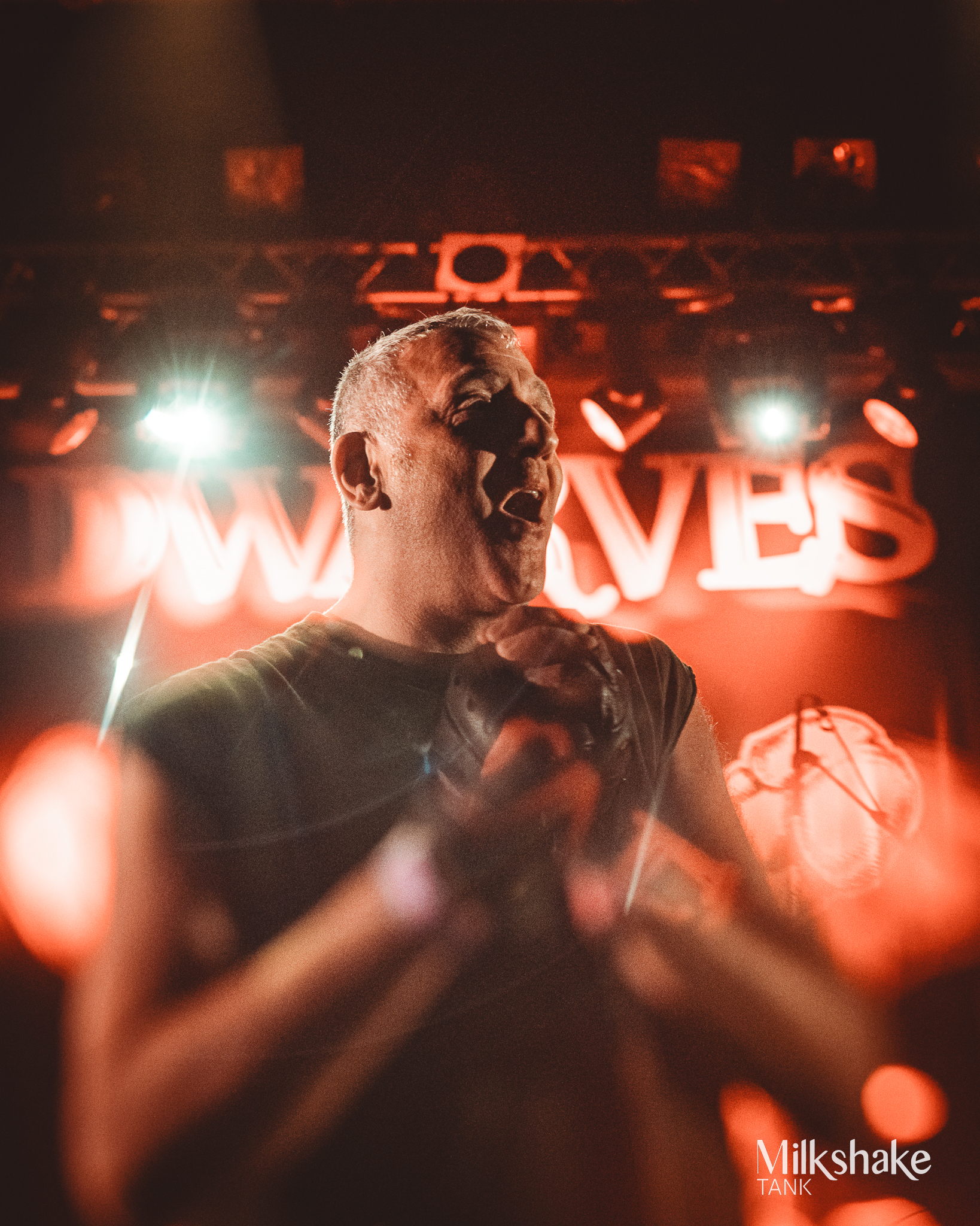Les Dwarves, avec leur imagerie provocatrice, ont poursuivi la soirée du Paris Punk Rock Summer dans une ambiance surchauffée. Le groupe est monté sur scène dans le noir, sous les acclamations. Dès la première chanson, le public connaissait les paroles par cœur, transformant la fosse en un tourbillon de sauts et de slams. Le chanteur Paul est souvent venu chanter sur le côté de la scène pour les autres groupes, et un gamin l’a accompagné pour sauter dans la fosse et slammer. L’énergie brute et l’interaction avec le public ont fait des Dwarves un moment fort de la soirée.