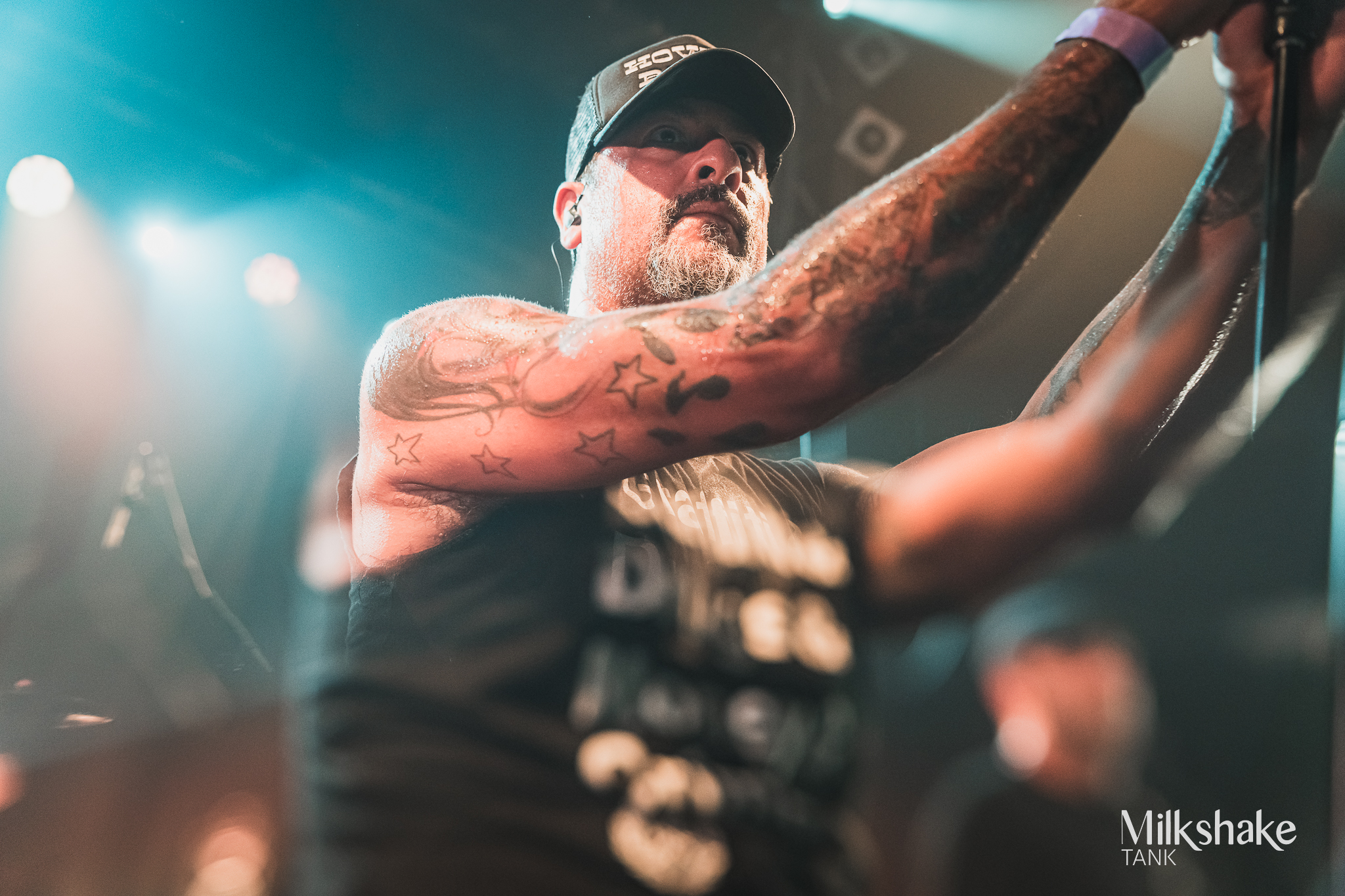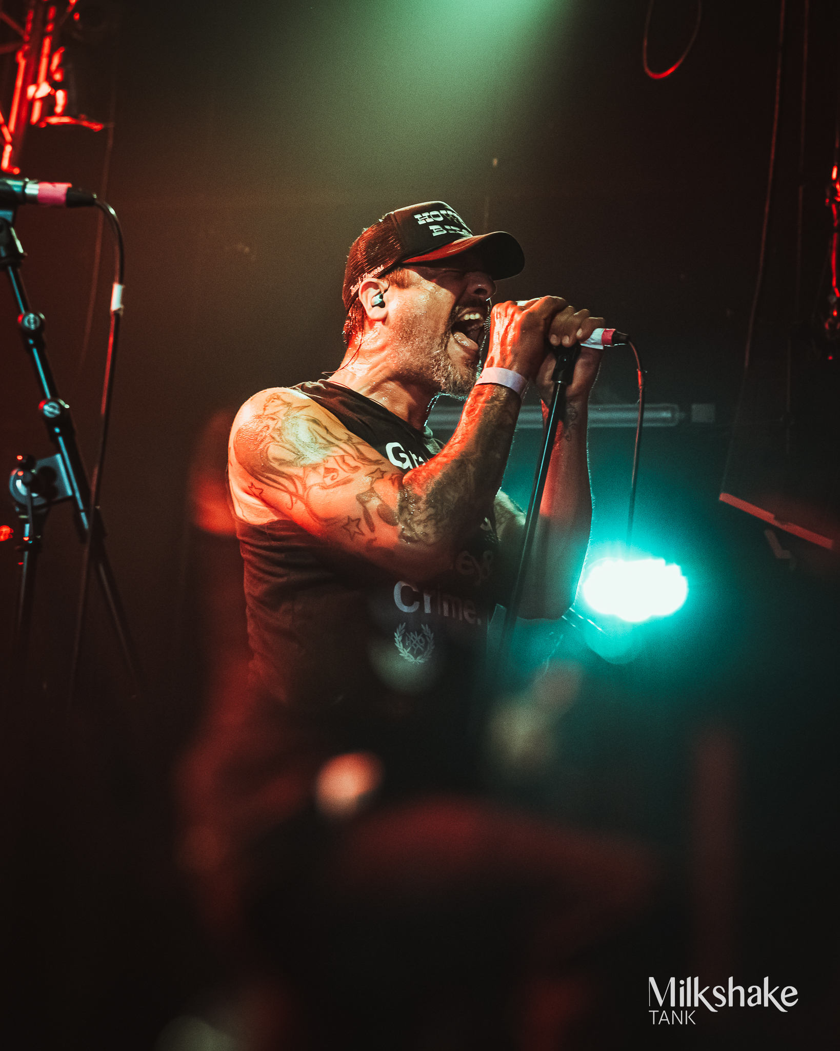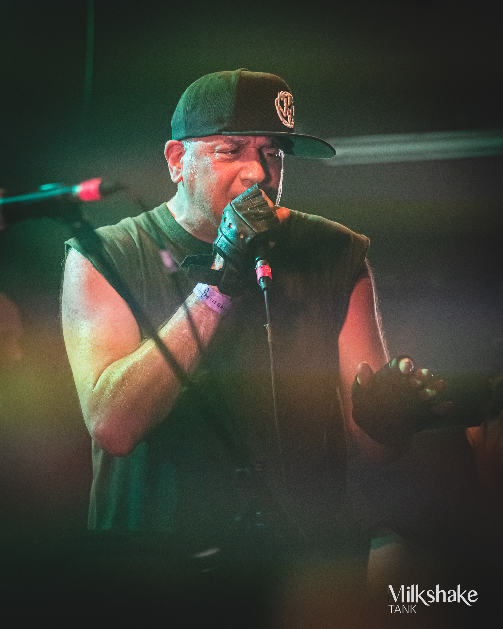 Cédric declared, “We fucking love you, we love you!” before kicking off “Broken Bomb Squad” as a call to relax and grab some drinks. On “Loaded to Fight,” he orchestrated a classic move: splitting the room into two for a massive mosh pit. With “Mucha Policia,” he called for a fucking intense mosh against the police, and the crowd responded with frenzy.