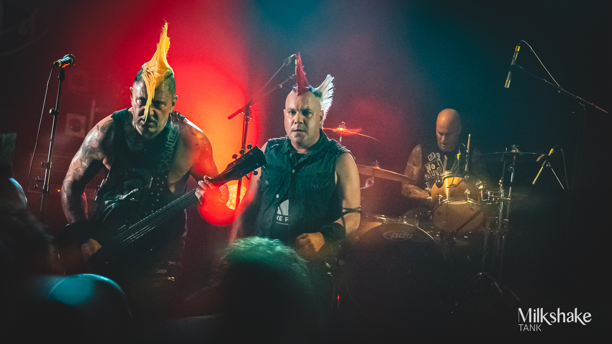 Pendant « Stronger », le guitariste Yacko transpire tellement que je me demande comment il lui est possible de ne pas perdre son mediator, et Cédric dédie la chanson aux Casualties et à tous les punks, retournant encore une fois en fosse. Pour « Blablast », Cédric demande au public de foutre le zbeul. Le chanteur de The Casualties, David, est sur le côté pour admirer le spectacle. Avec « Join the Night », Cédric dédie la chanson à Manux et toute son équipe, invitant à faire le bordel. « Punchline » voit un circle pit à la demande de Cédric, et il y a le premier slam de la soirée.