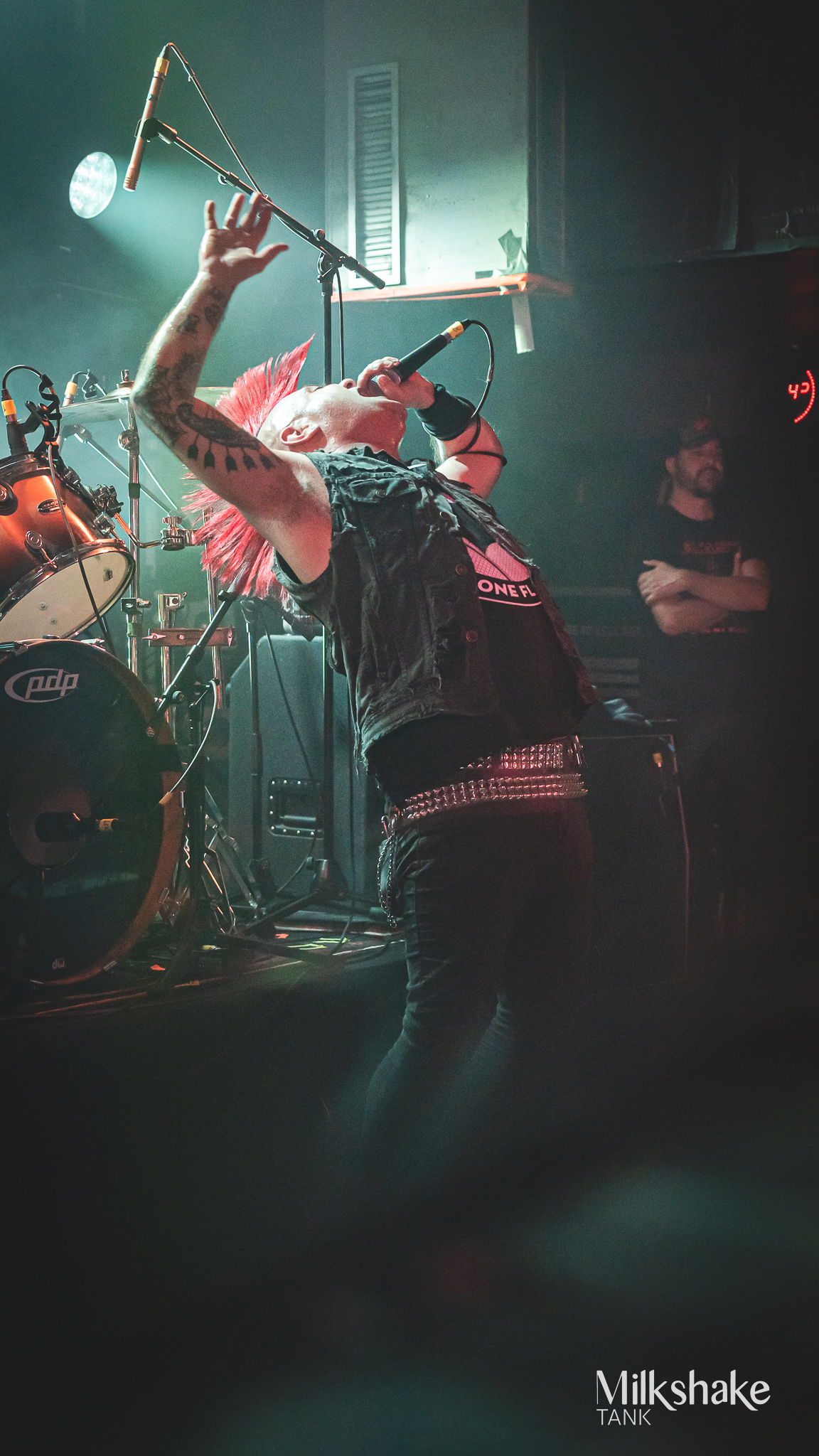 Le chanteur déclare : « Punk for life! On veut plus de pouvoir, plus de son, plus de niak!!! » Un problème de cymbale résolu en 3 secondes plus tard, et le public n’hésite pas à donner de la voix ! Sur le dernier titre, le chanteur remercie le public : « Merci d’être ici, on est très content de jouer à Paris !!! » Le public tape en rythme dans les mains à la demande du batteur qui leur montre le rythme à suivre. Il présente les membres du groupe et c’est une ovation à chaque nom ! Bien qu’on leur signale que le set est terminé, ils continuent avec une dernière chanson de moins d’une minute, punk jusqu’au bout.