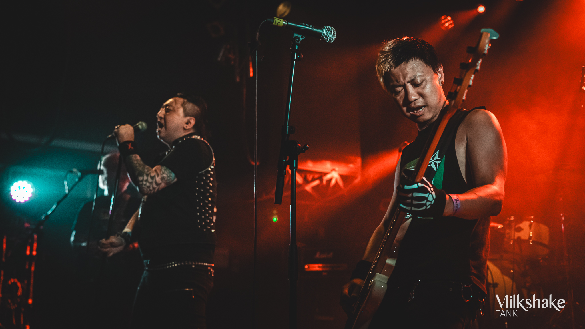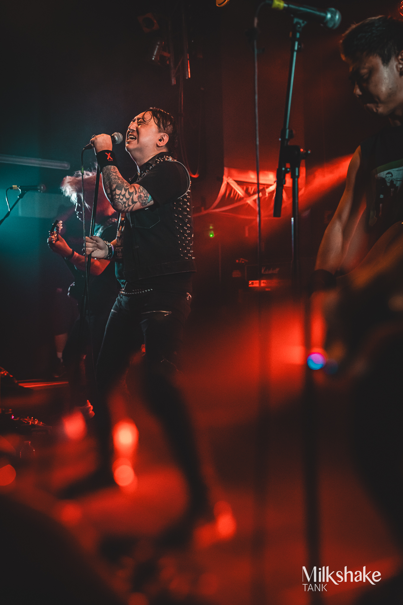 The singer didn’t hesitate to involve the audience in singing along. Arms were raised high for the chorus. The crowd was very responsive to each song, prompting the singer to call for everyone to move together: “Listen (chorus) and then Sing together.” David, the singer from The Casualties, was at the side of the stage enjoying the performance.