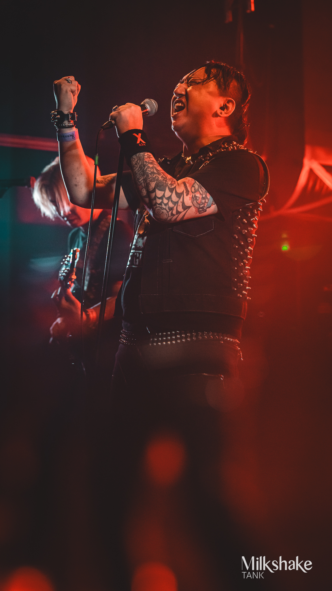 The amusing incident involved the singer Paul. At one point, he came over to me at the side of the stage and gestured for me to follow him. Feeling shy, I declined and chose to stay where I was. Paul returned to the stage but didn’t give up on the idea. Shortly after, he plunged into the mosh pit, sparking a fresh wave of crowd surfing and moshing. This interaction added a personal and memorable touch to their performance.