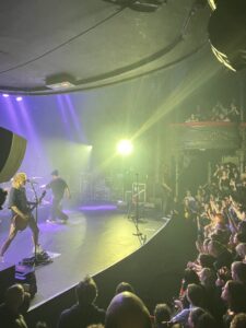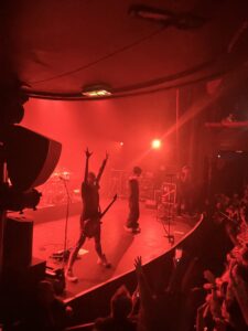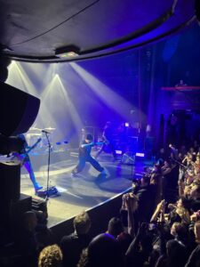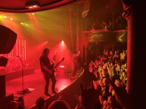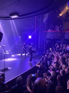 The intro kicks in, and Rest In Pieces opens the night. The crowd is already all-in, screaming the chorus like the show’s been going for twenty minutes. La Cigale is on fire, fully ready. Guilty comes next and turns the whole venue into a giant karaoke, every word shouted without hesitation. Lauri grins; you can feel how good it is for him to be back in France. No Fear drops, and without being asked, without any cue, the crowd starts clapping in perfect rhythm. Behind them, the screen glows turquoise, black butterflies drifting across it, giving the song an almost hypnotic vibe.