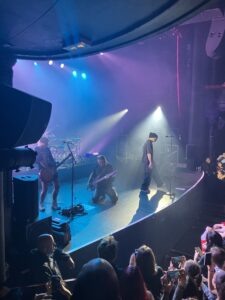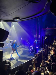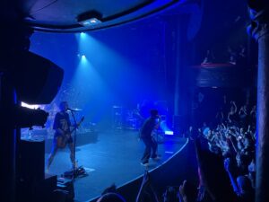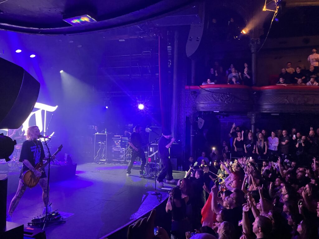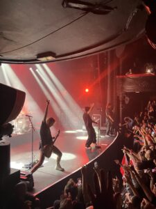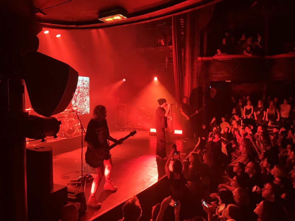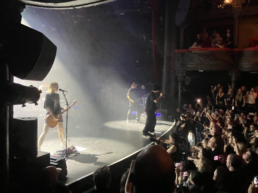 L’intro résonne, et Rest In Pieces ouvre le bal. Le public est déjà à fond, hurlant le refrain comme si le concert avait commencé depuis vingt minutes. La Cigale est chaude, prête. Guilty enchaîne et transforme la salle en karaoké géant, chaque mot repris sans hésitation. Lauri sourit, le plaisir de revenir en France se sent. No Fear débarque, et sans consigne, sans signal, le public se met à applaudir en rythme. Derrière eux, l’écran se teinte de turquoise, des papillons noirs flottent, donnant au morceau une dimension presque hypnotique.