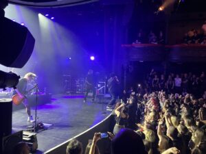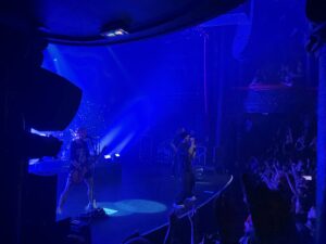 Les “I love you” fusent de partout, au point de couvrir l’annonce suivante. Mais dès les premières notes, aucun doute possible : Not Like the Other Girls est reconnu instantanément. L’ambiance devient rouge, festive, presque dansante. F-F-F-Falling fait sauter toute la salle, suivie de Banksy, qui maintient cette énergie brute. Avec Livin’ in a World Without You, les chœurs prennent une ampleur folle. In My Life continue sur cette lancée avant que In the Shadows ne fasse littéralement exploser La Cigale. La foule est en délire. Lauri fait chanter la salle par portions, rendant le morceau encore plus interactif, encore plus vivant. Il annonce alors la dernière chanson. Le chanteur du groupe précédent le rejoint sur scène. Le public balance les bras de gauche à droite sur Weirdo, pendant que le groupe ne cesse de remercier une salle qui leur rend tout.