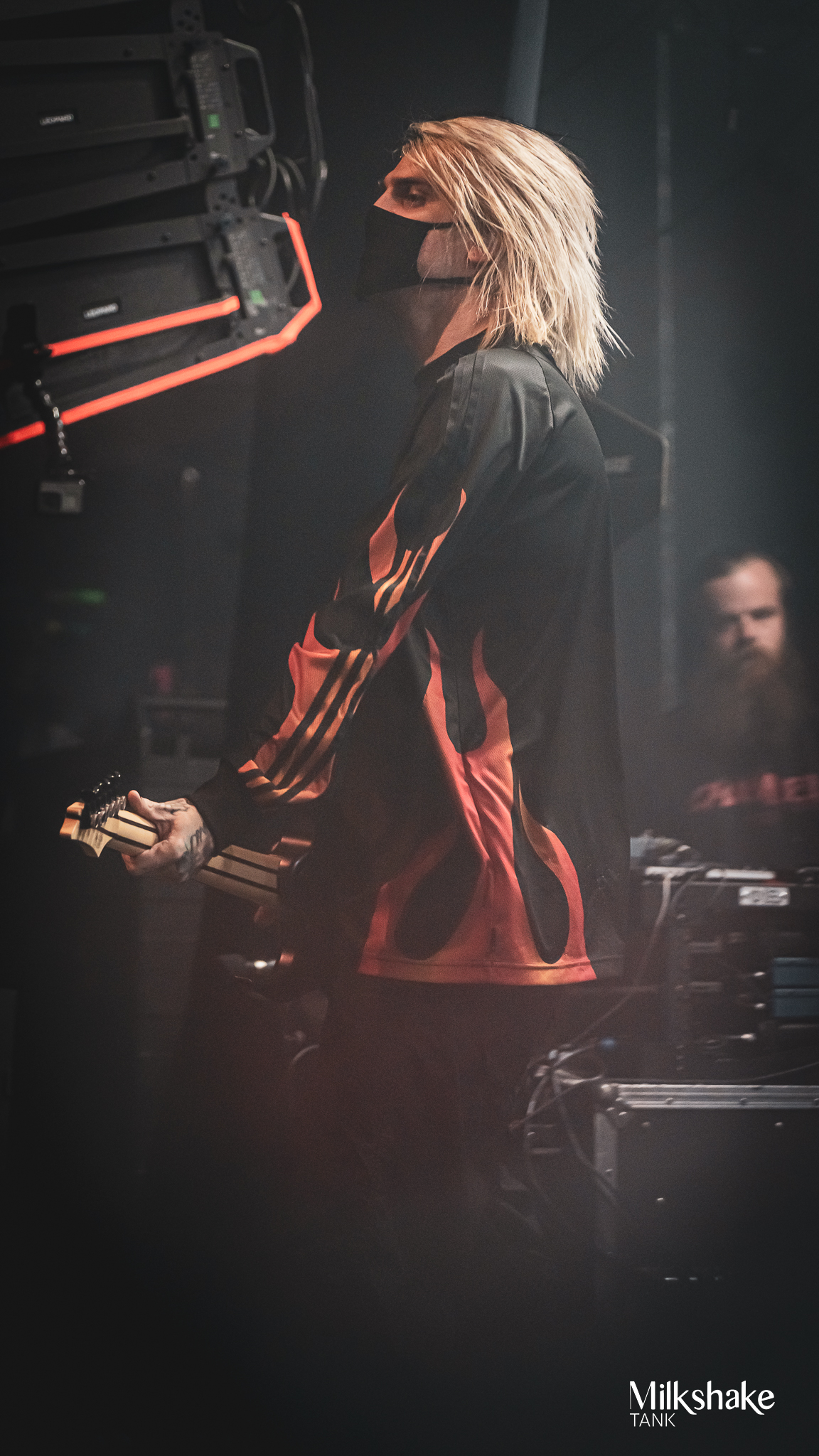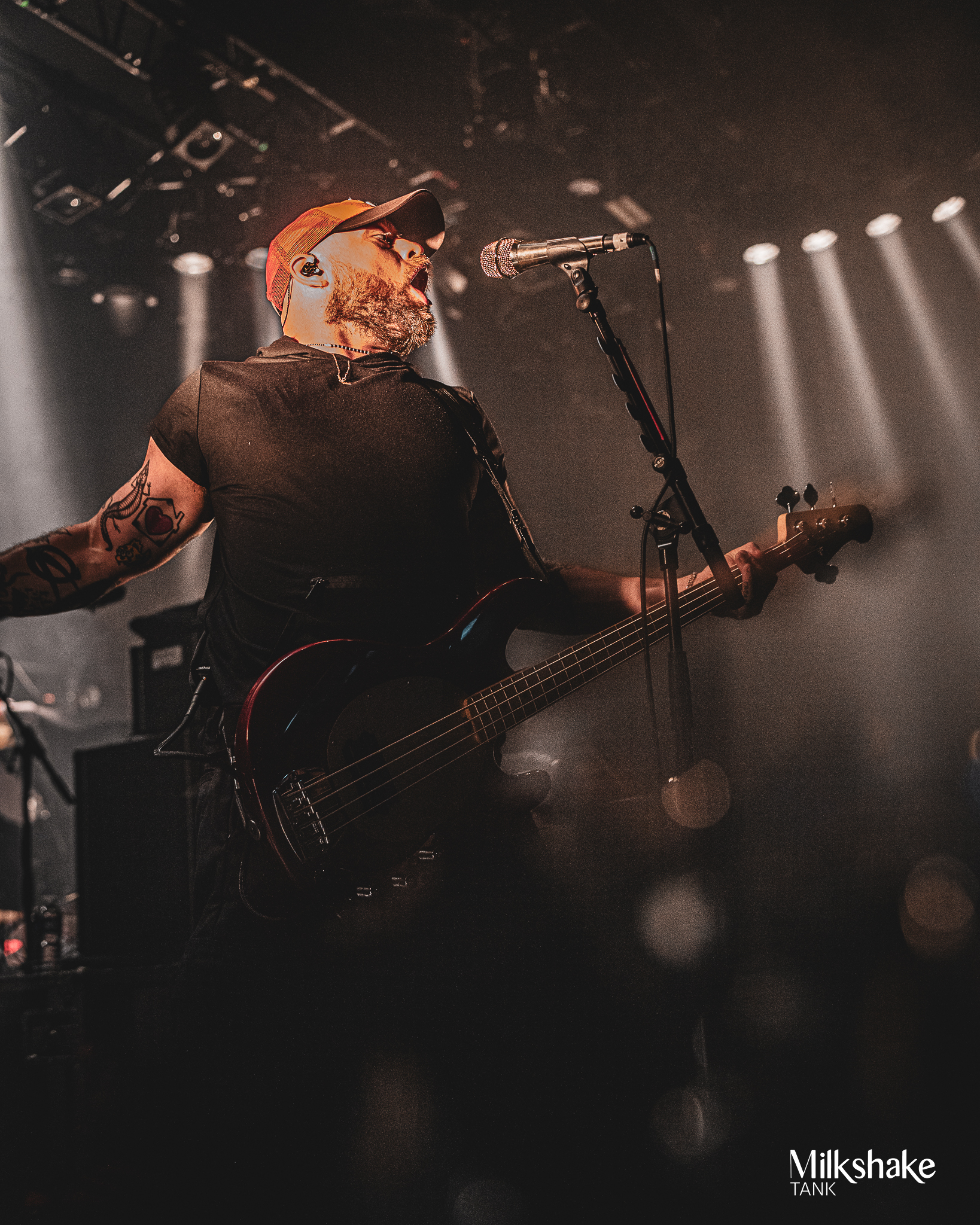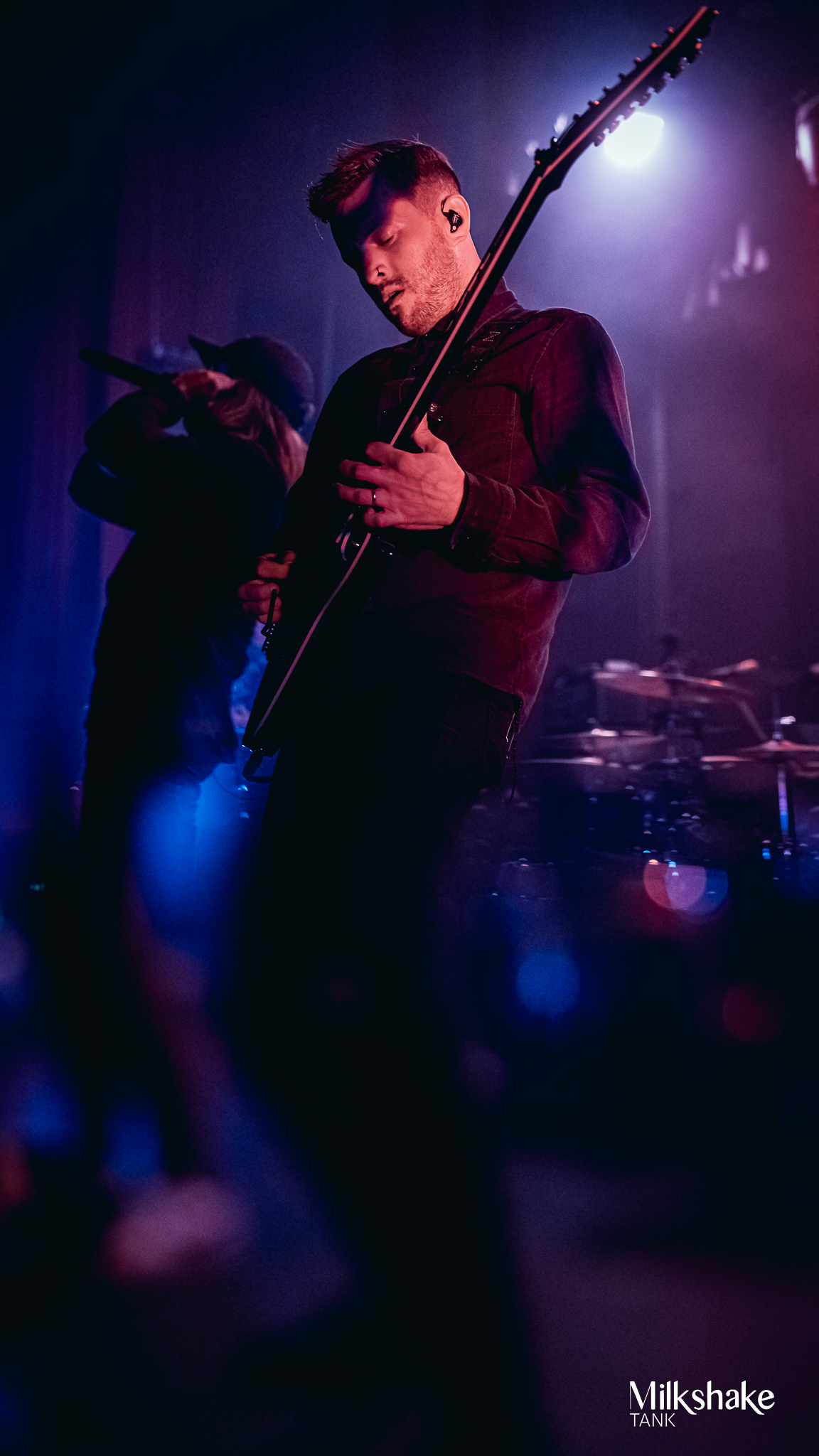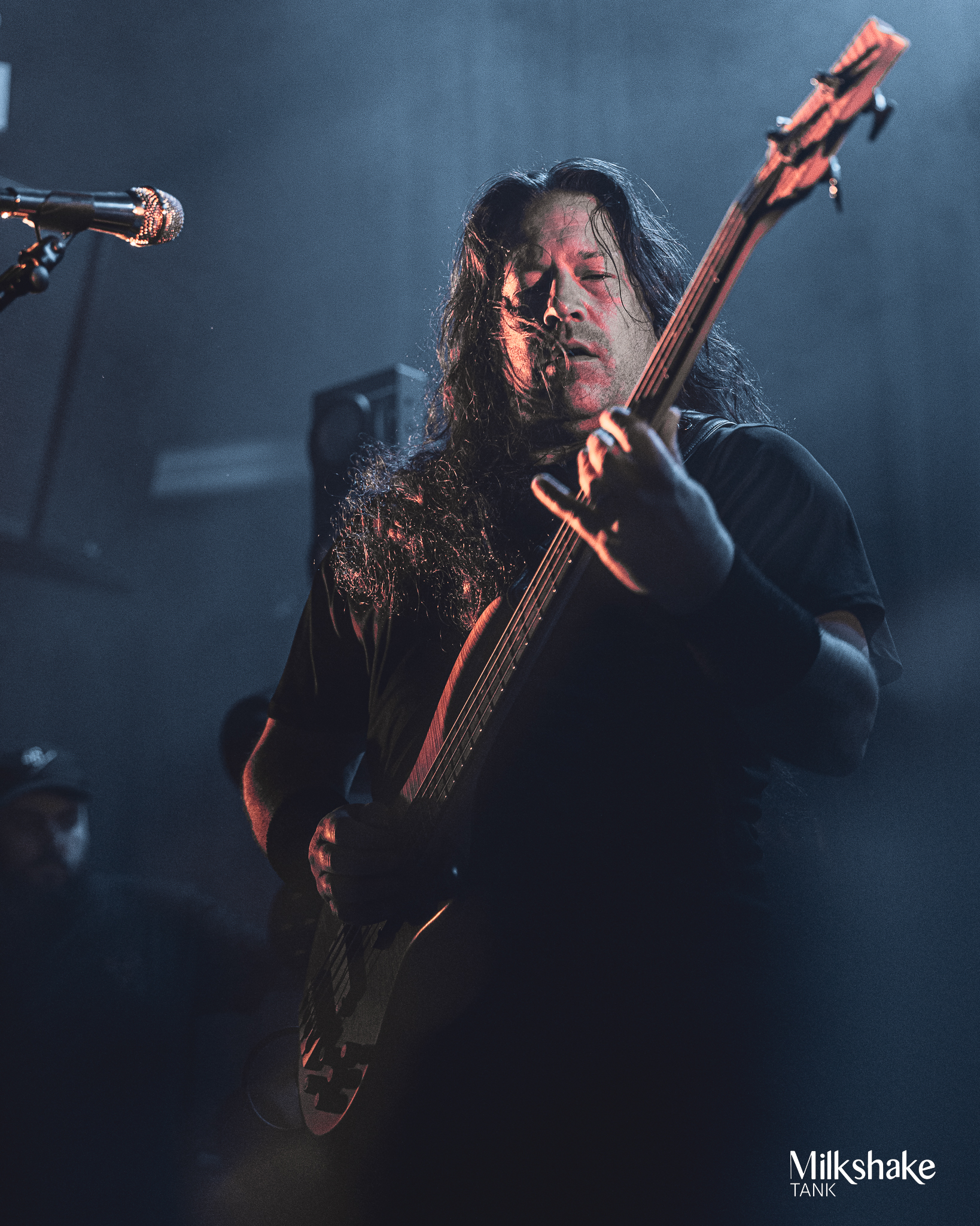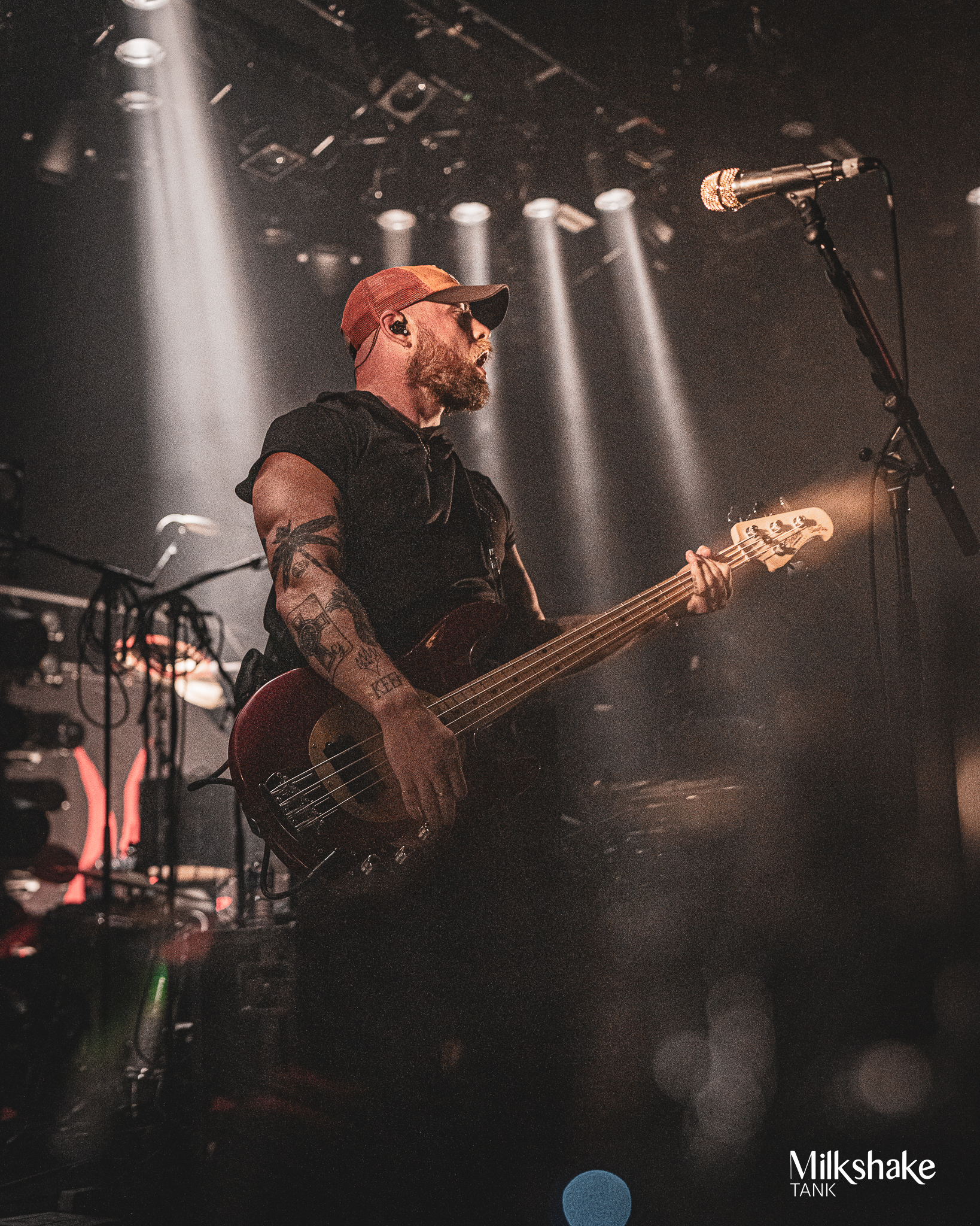 Fit for a King hit the stage with “The Hell We Create“, immediately followed by an explosion of energy. Ryan Kirby, the singer, and Ryan O’Leary, the bassist, who kept spinning his bass around, riled up the crowd, creating frantic circle pits and slams, with the pit going wild. During “Reaper,” Ryan K called for everyone to move and make noise while Ryan O handled the backing vocals. “Backbreaker” triggered another frenzy in the pit, with Ryan Kirby shouting to the back of the room, “Move closer!” The slams multiplied, putting security to the test. Ryan K announced, “Two more songs, everybody scream as loud as you can,” while security seemed overwhelmed by the crowd surfers. Ryan O’Leary shouted, “Make some noise for yourselves and all the bands tonight,” and Ryan K asked if there were any fans of “Band of Sacrifice.” A wall of death was called for and executed amid ongoing slams. The set ended spectacularly with an impressive wall of death and a memorable “blegh.
