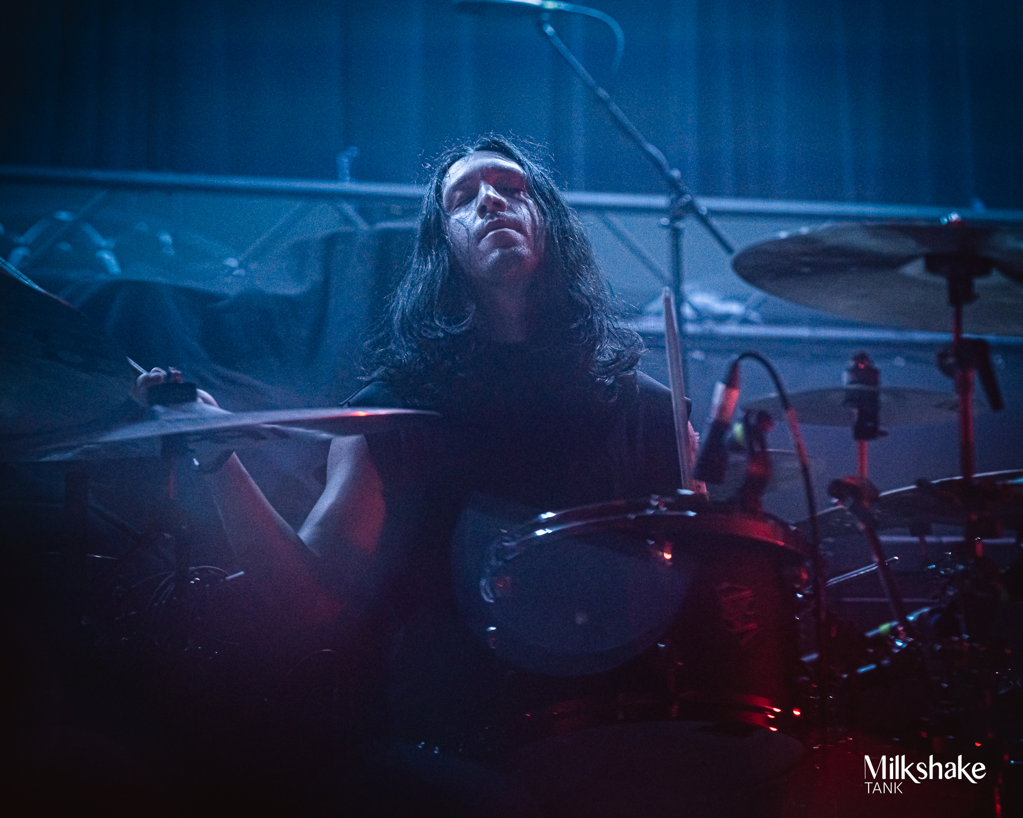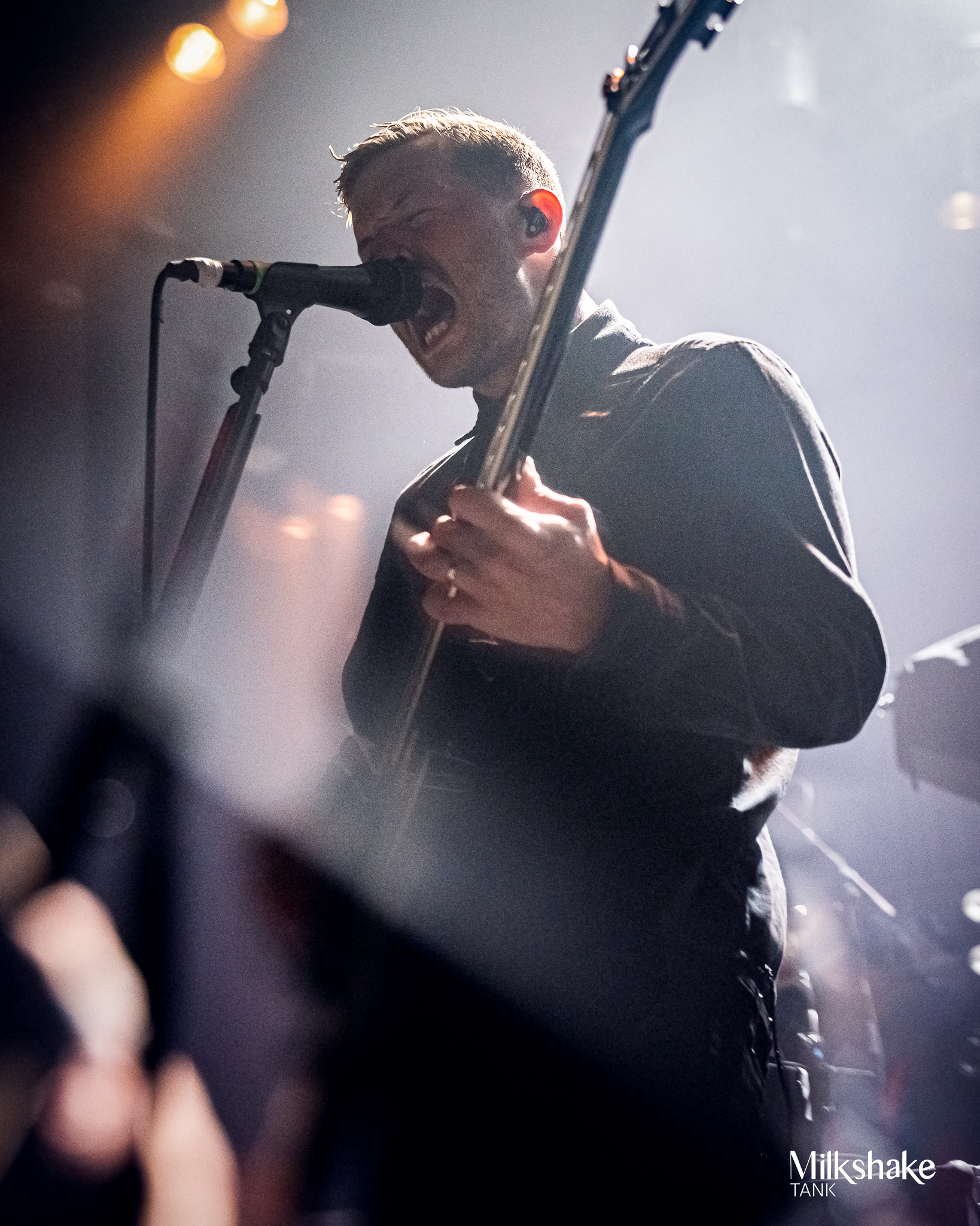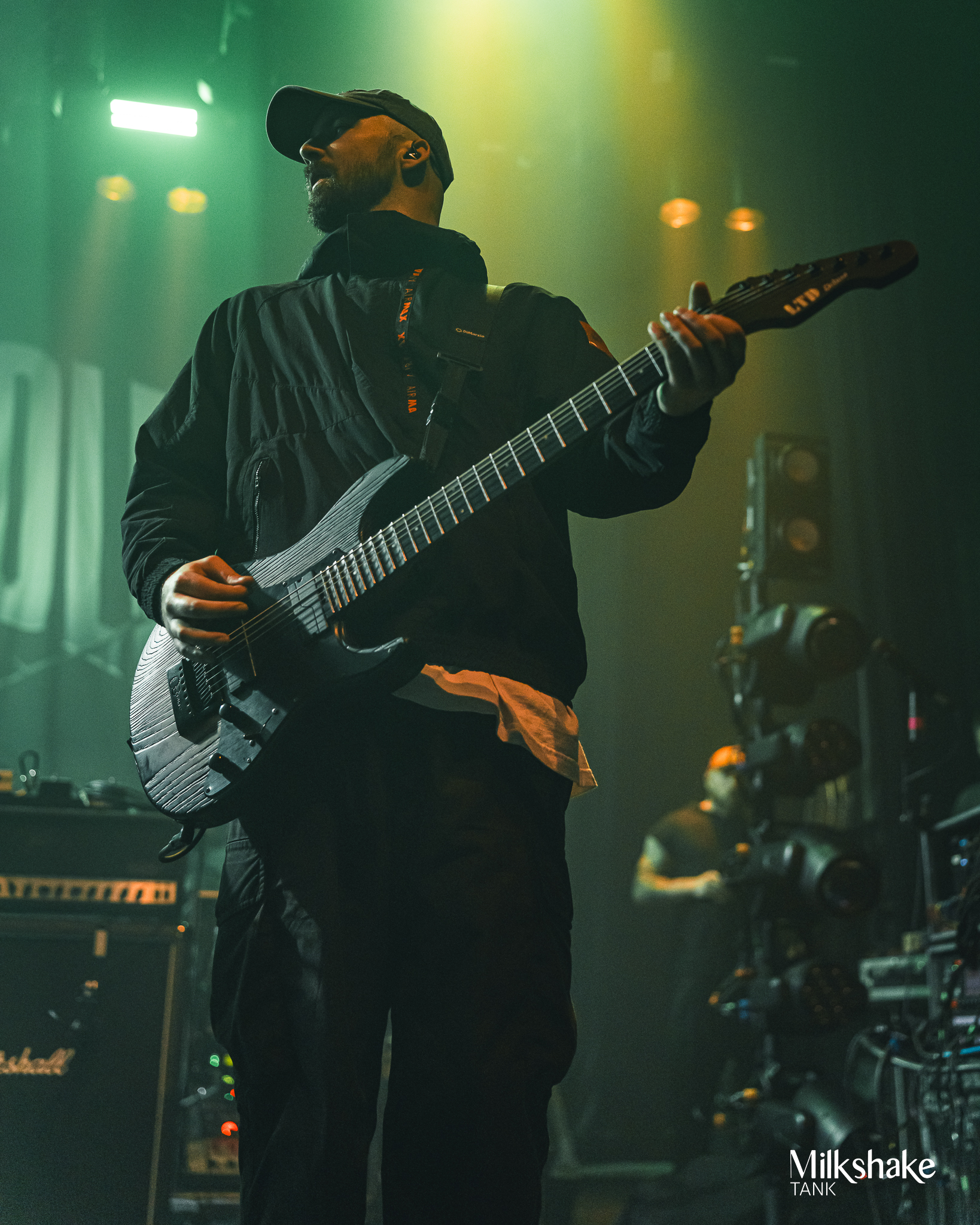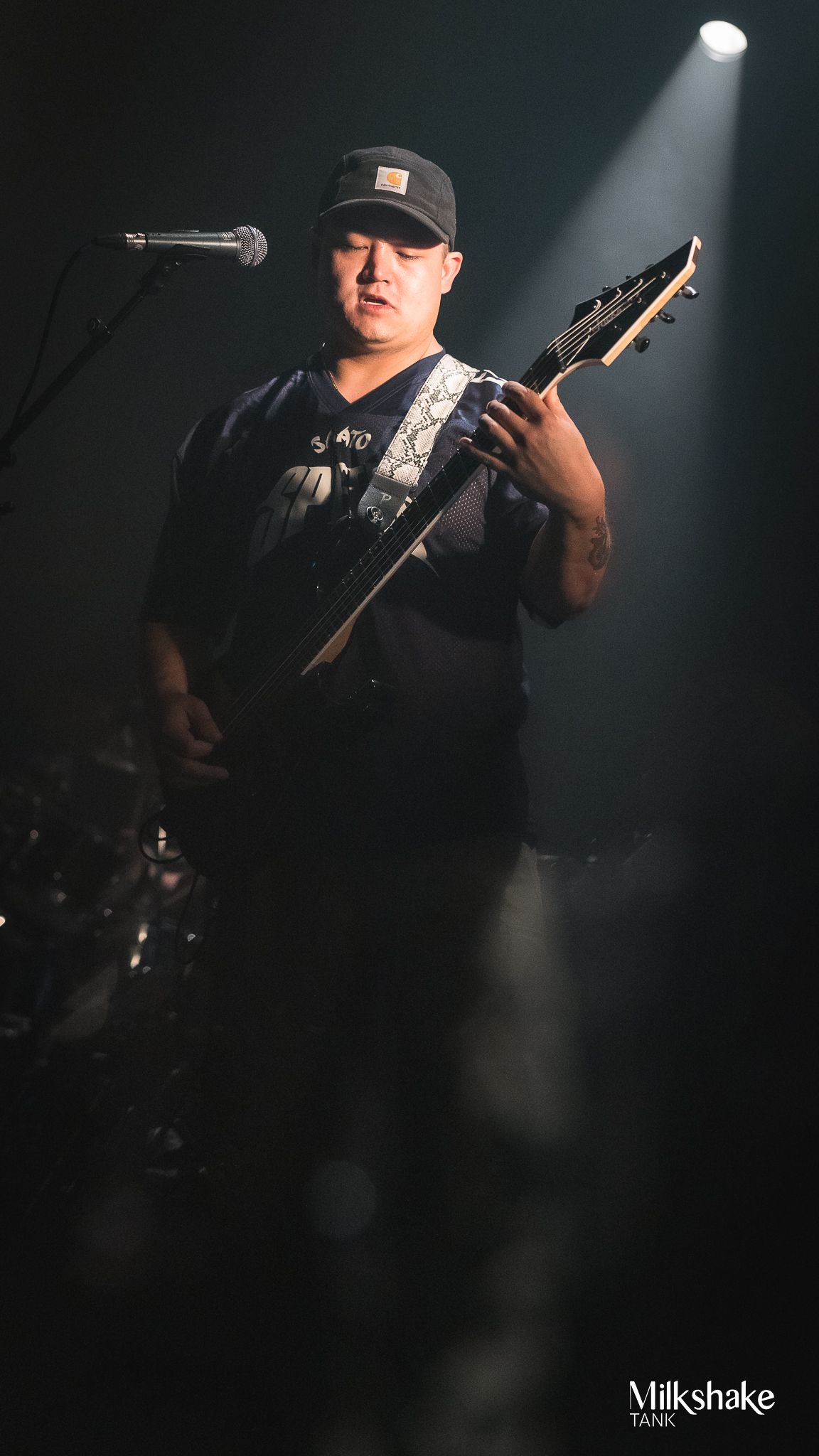 Fit for a King hit the stage with “The Hell We Create“, immediately followed by an explosion of energy. Ryan Kirby, the singer, and Ryan O’Leary, the bassist, who kept spinning his bass around, riled up the crowd, creating frantic circle pits and slams, with the pit going wild. During “Reaper,” Ryan K called for everyone to move and make noise while Ryan O handled the backing vocals. “Backbreaker” triggered another frenzy in the pit, with Ryan Kirby shouting to the back of the room, “Move closer!” The slams multiplied, putting security to the test. Ryan K announced, “Two more songs, everybody scream as loud as you can,” while security seemed overwhelmed by the crowd surfers. Ryan O’Leary shouted, “Make some noise for yourselves and all the bands tonight,” and Ryan K asked if there were any fans of “Band of Sacrifice.” A wall of death was called for and executed amid ongoing slams. The set ended spectacularly with an impressive wall of death and a memorable “blegh.