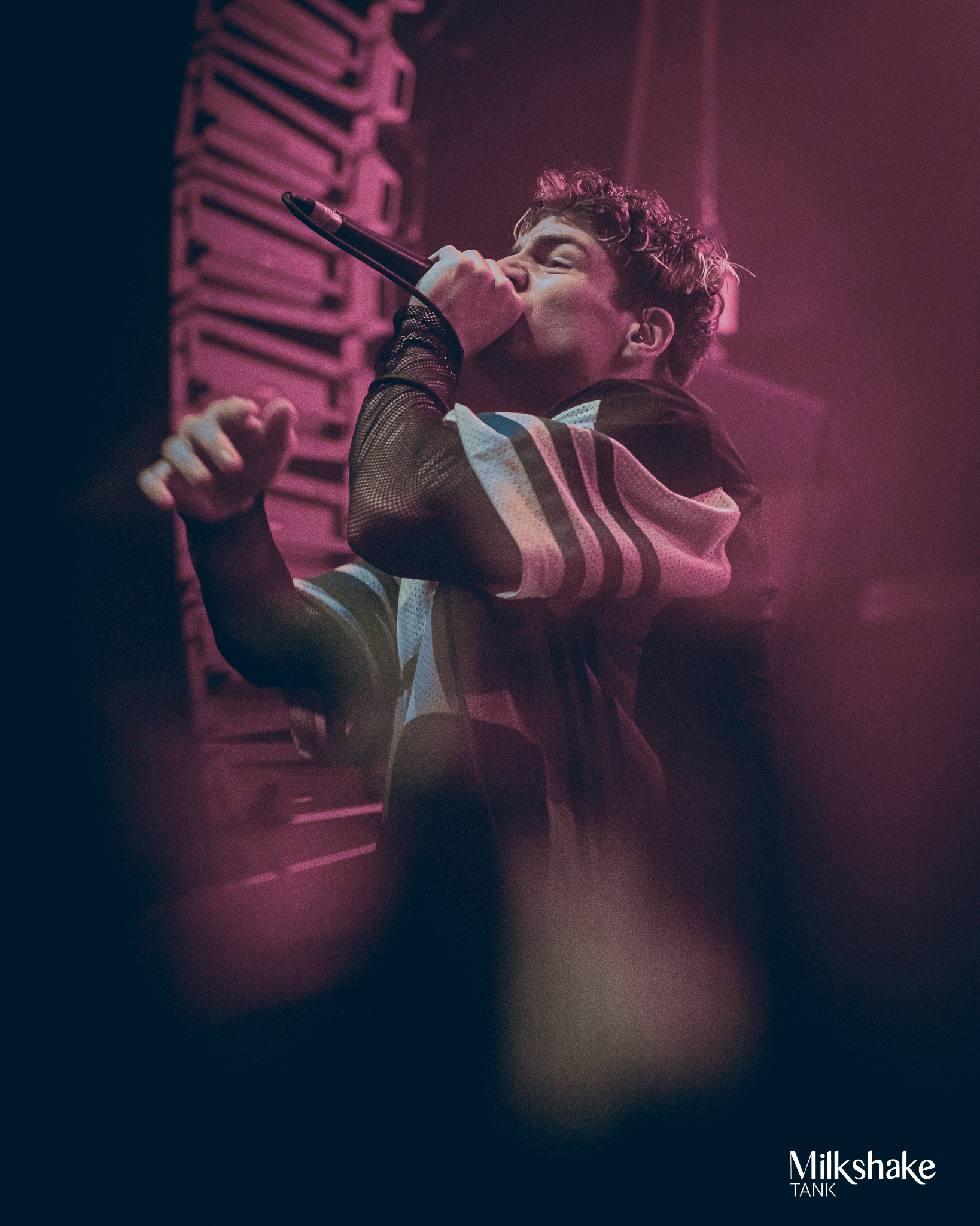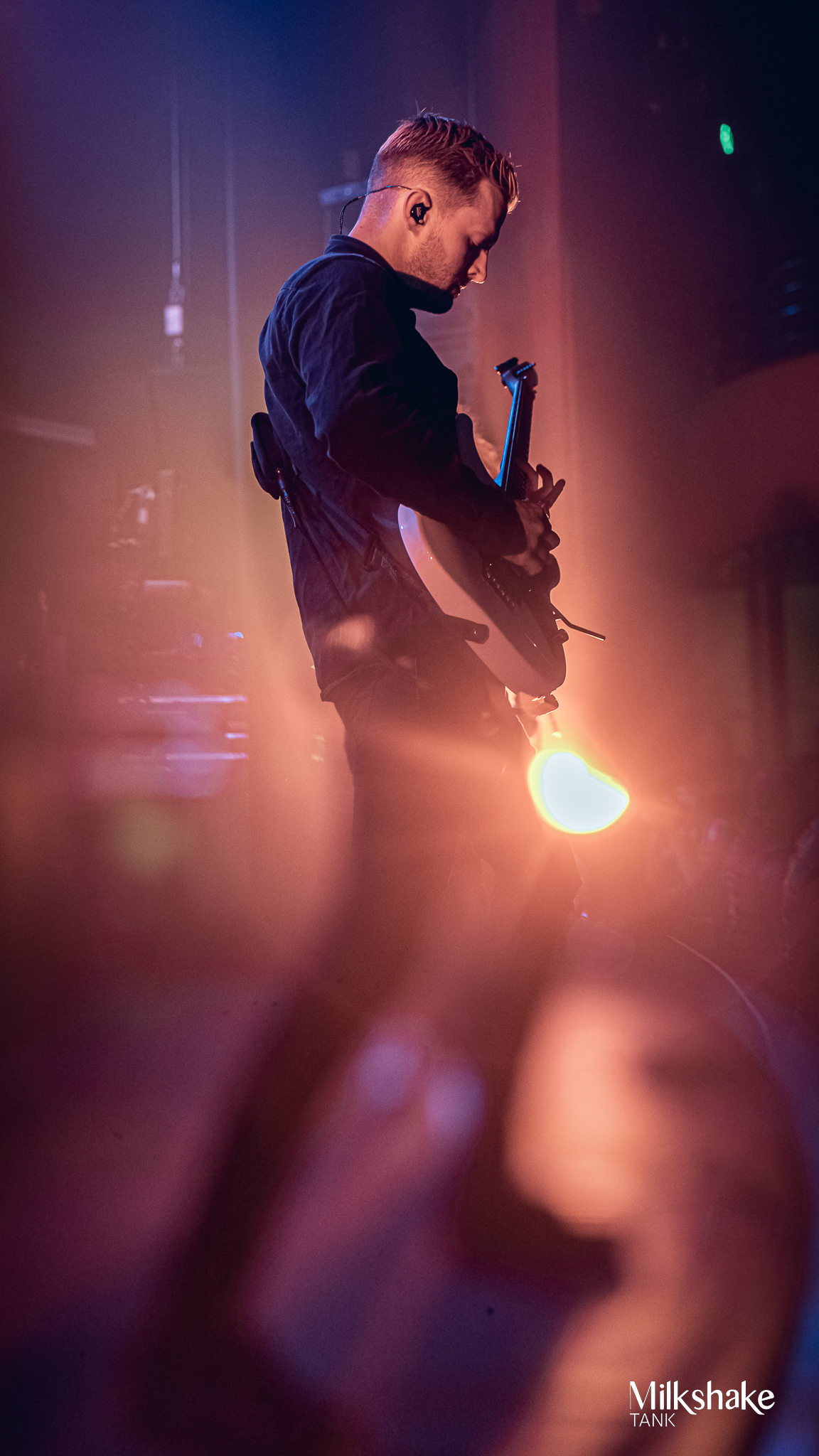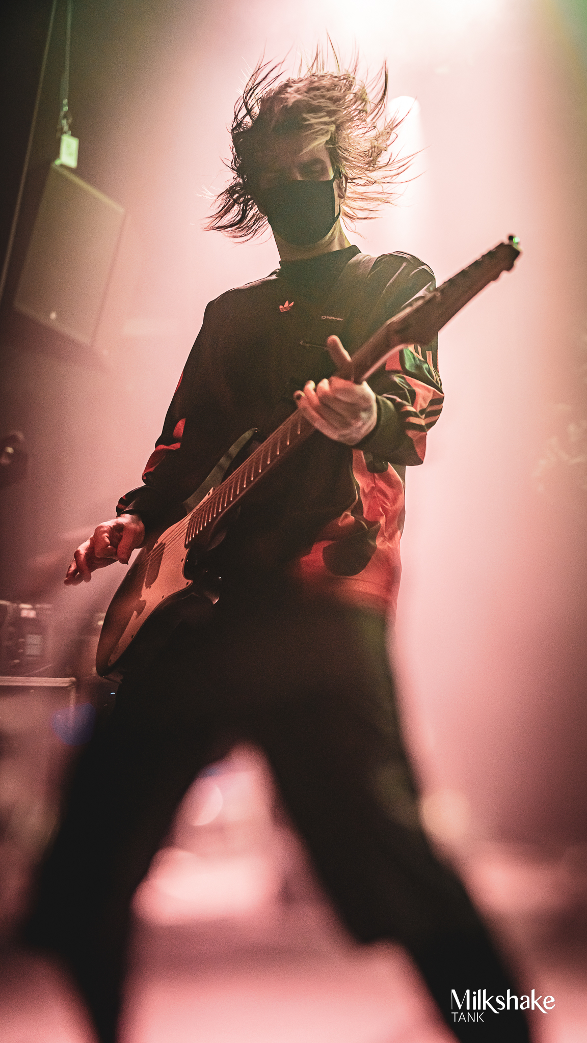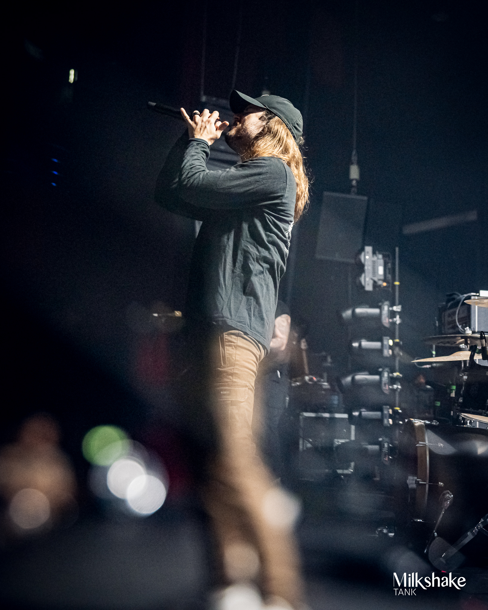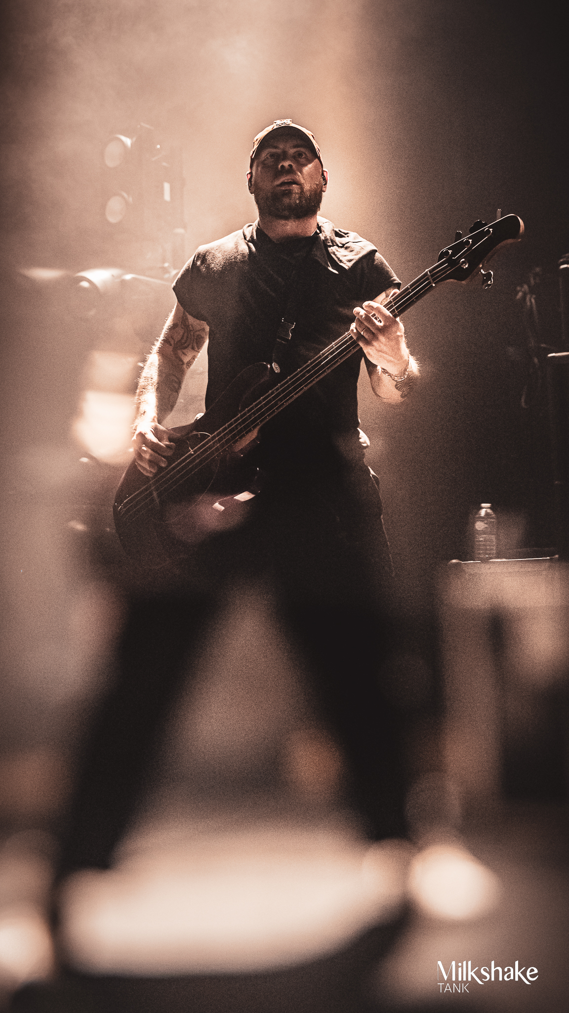 Fit for a King hit the stage with “The Hell We Create“, immediately followed by an explosion of energy. Ryan Kirby, the singer, and Ryan O’Leary, the bassist, who kept spinning his bass around, riled up the crowd, creating frantic circle pits and slams, with the pit going wild. During “Reaper,” Ryan K called for everyone to move and make noise while Ryan O handled the backing vocals. “Backbreaker” triggered another frenzy in the pit, with Ryan Kirby shouting to the back of the room, “Move closer!” The slams multiplied, putting security to the test. Ryan K announced, “Two more songs, everybody scream as loud as you can,” while security seemed overwhelmed by the crowd surfers. Ryan O’Leary shouted, “Make some noise for yourselves and all the bands tonight,” and Ryan K asked if there were any fans of “Band of Sacrifice.” A wall of death was called for and executed amid ongoing slams. The set ended spectacularly with an impressive wall of death and a memorable “blegh.