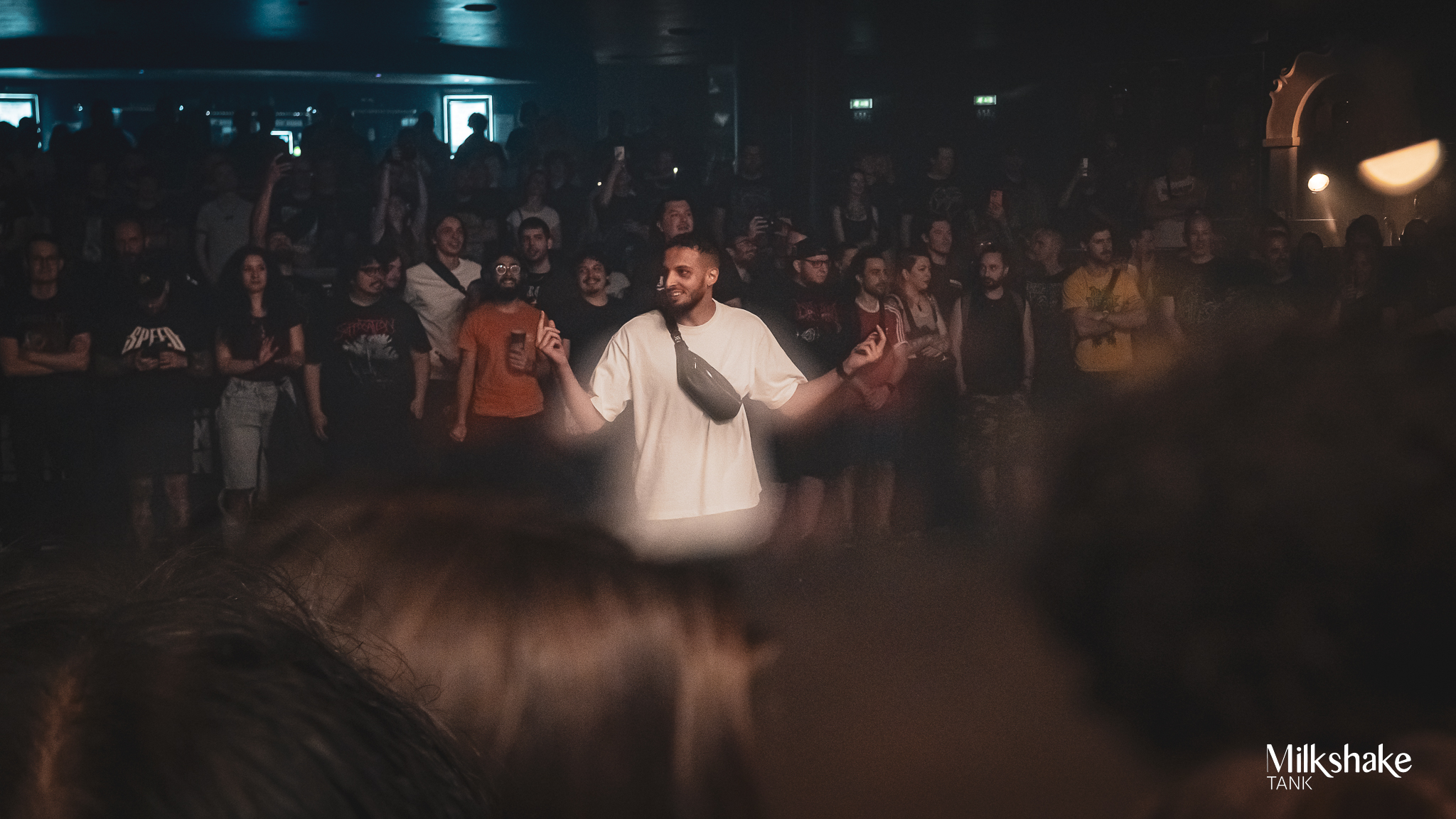 Dès les premières notes de “Bring Back the Noise“, Alpha Wolf assène une claque sonore à l’audience. Les headbangs sont frénétiques et les paroles reprises en chœur. Les photographes doivent éviter la barrière tant ça headbang fort. Lochie Keogh, le chanteur, remercie le public parisien pour son accueil chaleureux avec un “Merci beaucoup”, provoquant des mosh pits et des slams ininterrompus. Lors de “Creep”, Lochie demande un wall of death à mi-parcours, et la fosse s’exécute instantanément. Sur “Sub-Zero“, de nombreux fans sont portés sur les épaules de leurs amis pour chanter à l’unisson, tandis que Ryan O’Leary, le bassiste de Fit for a King, récupère les crowsurfers, Lochie tapant sur les épaules de la sécurité pour leur rappeler leur travail. Lochie fait un cœur avec les mains sur “Bleed for You“, geste immédiatement suivi par le public. Il adresse un clin d’œil cynique à la sécurité en annonçant “Suck to Suck“, Ryan rejoint de nouveau la scène et fait asseoir tout le monde afin de rejoindre Lochie pour finir le titre au micro. L’intensité culmine sur “Haunter” avec Lochie qui crie “Faites du sale motherfucker”. Le set se termine en hystérie avec “Akudama“, Lochie demandant plus d’ambiance à l’arrière de la salle et plusieurs crowsurfers se précipitant vers la scène.