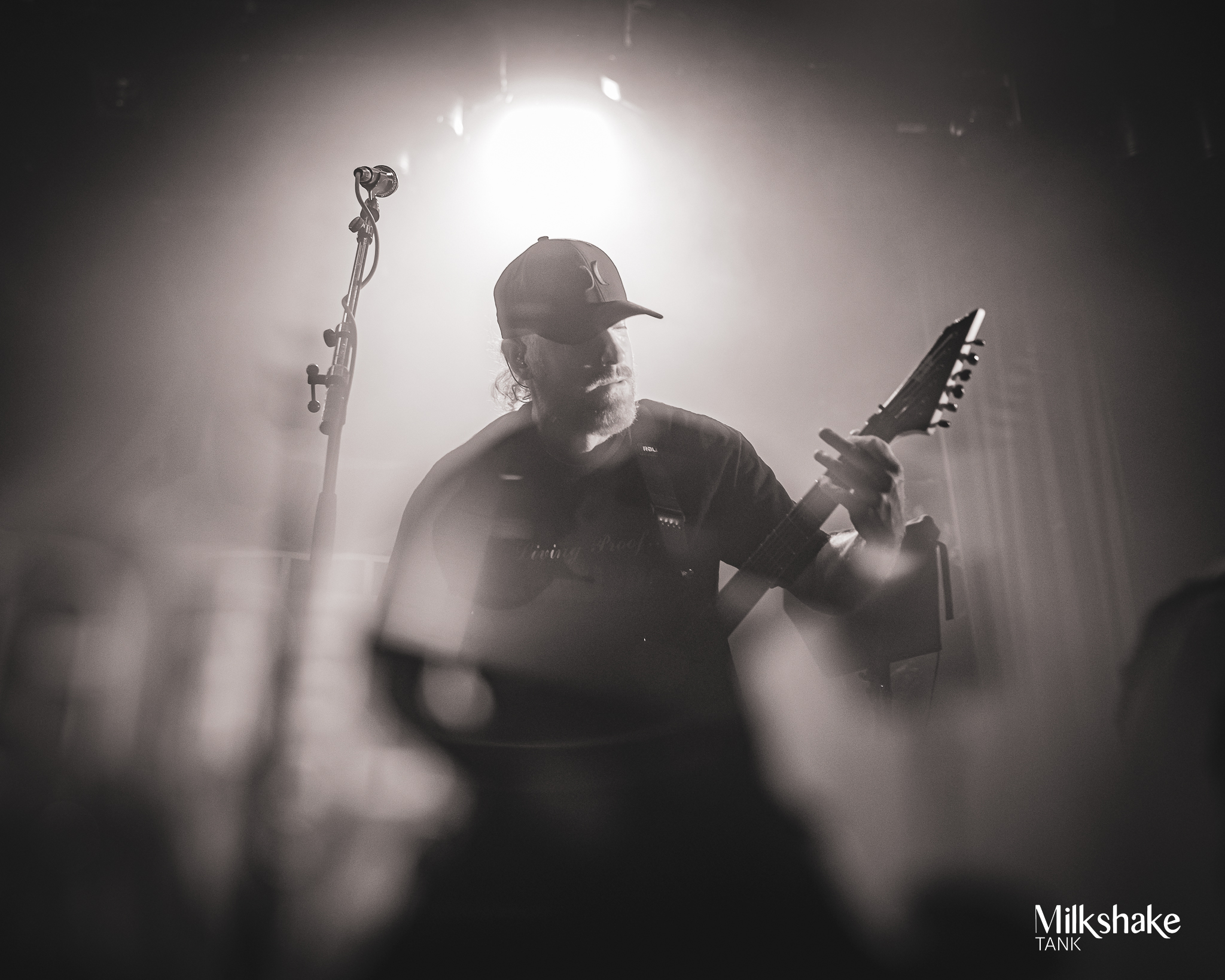 Tyler demande d’allumer les téléphones pour “The Purest Strain of Hate“, créant un moment visuellement époustouflant. “Godlike” fait trembler le sol sous les pieds des fans frappant du pied, et Tyler demande un headbang intense pour “Keres“, la fosse s’exécute avec une énergie débordante, enchaînant les slams sans répit pour la sécurité. “Everything Unwanted” est la dernière baffe avant le rappel. Rappel qui est époustouflant avec un solo de 7 cordes sur “Reign of Darkness“, suivi de “Puppet Master“, laissant les entrailles des fans vibrer sous les coups de double grosse caisse, concluant une soirée inoubliable.