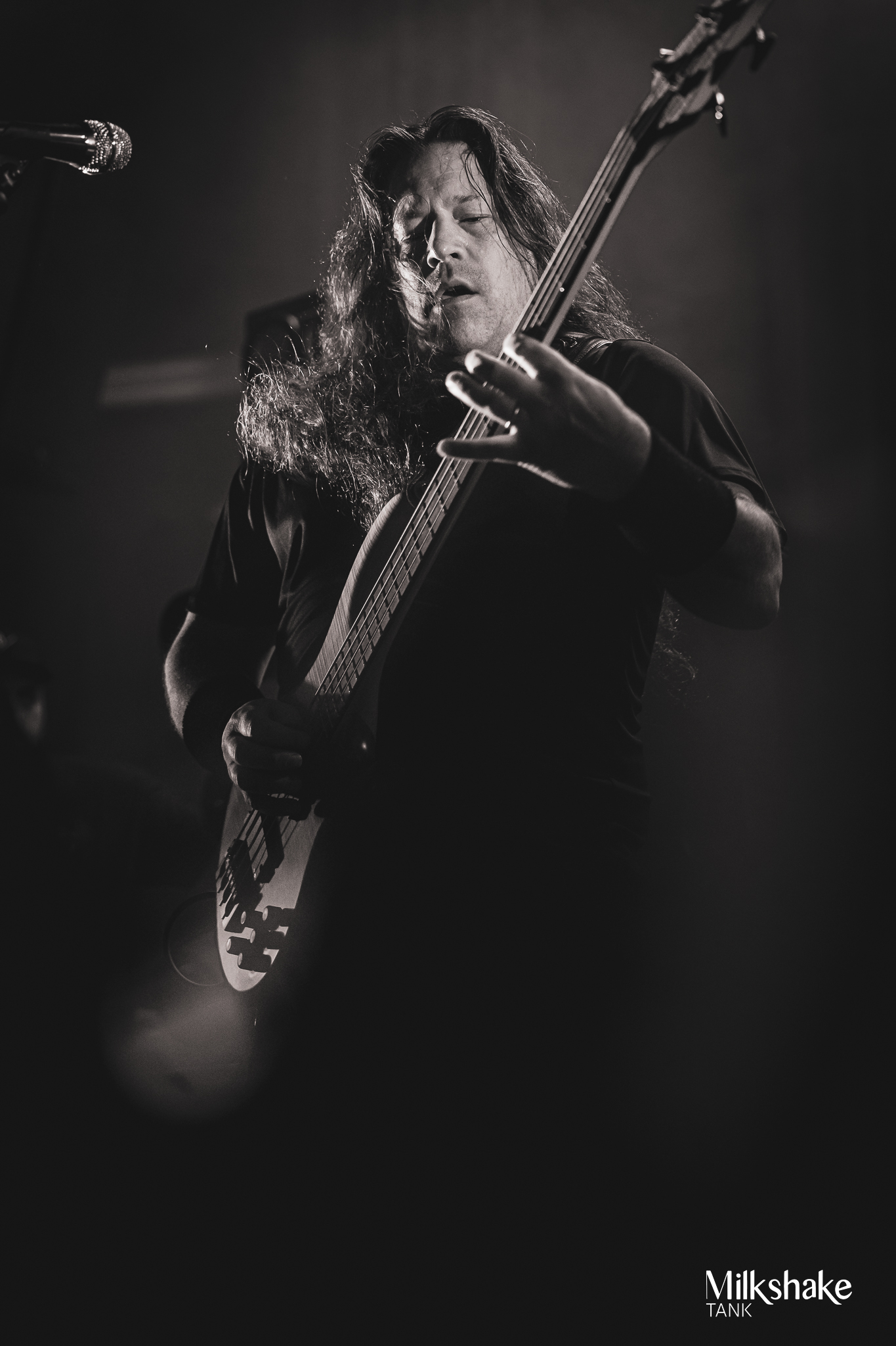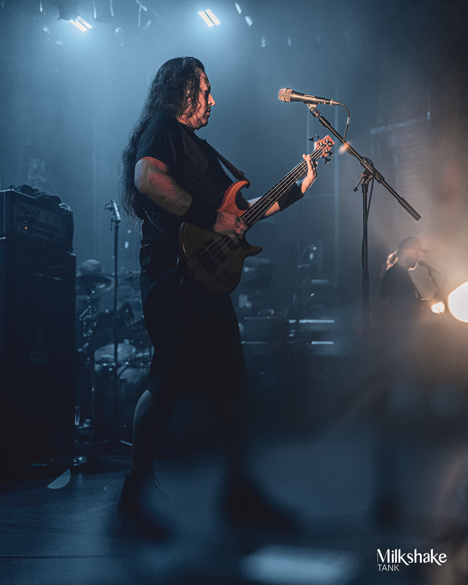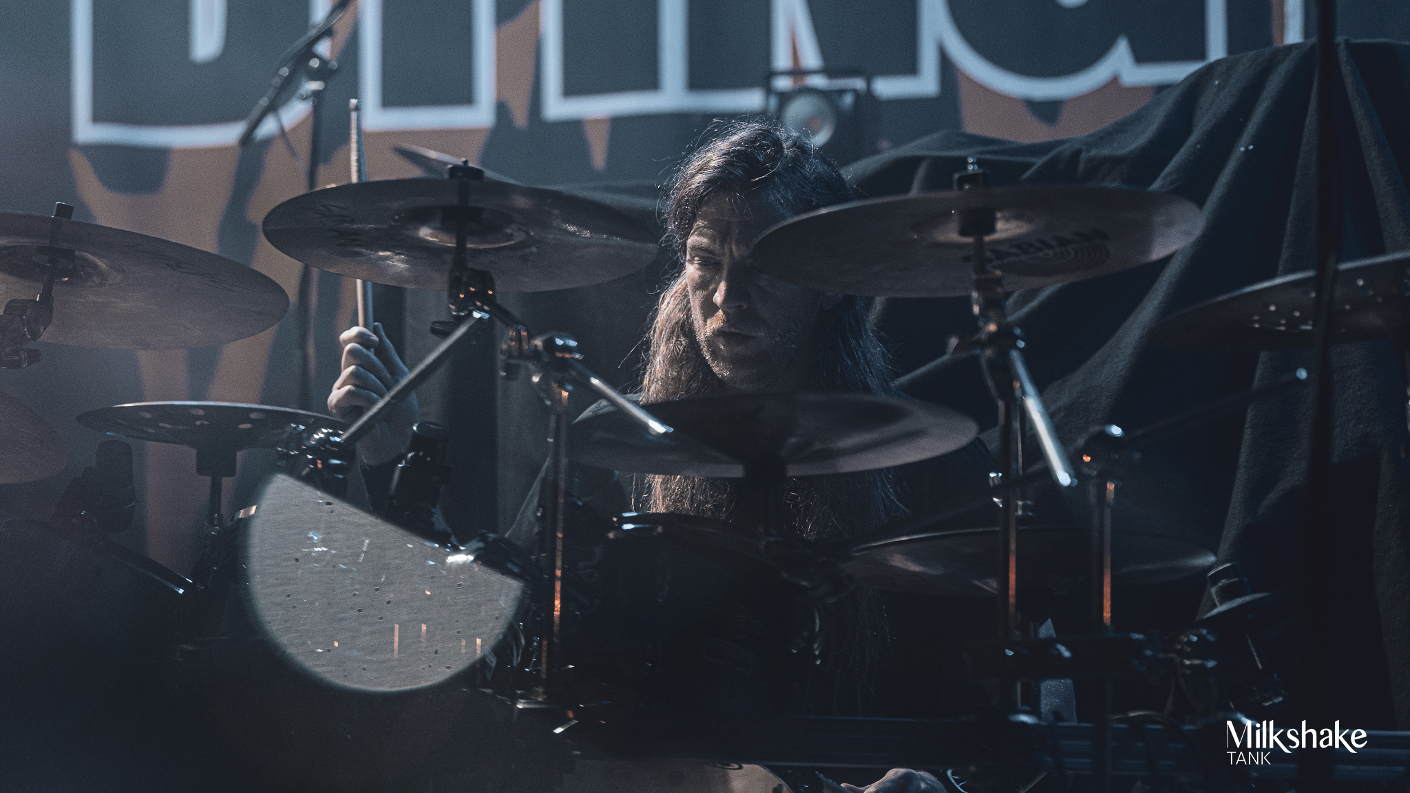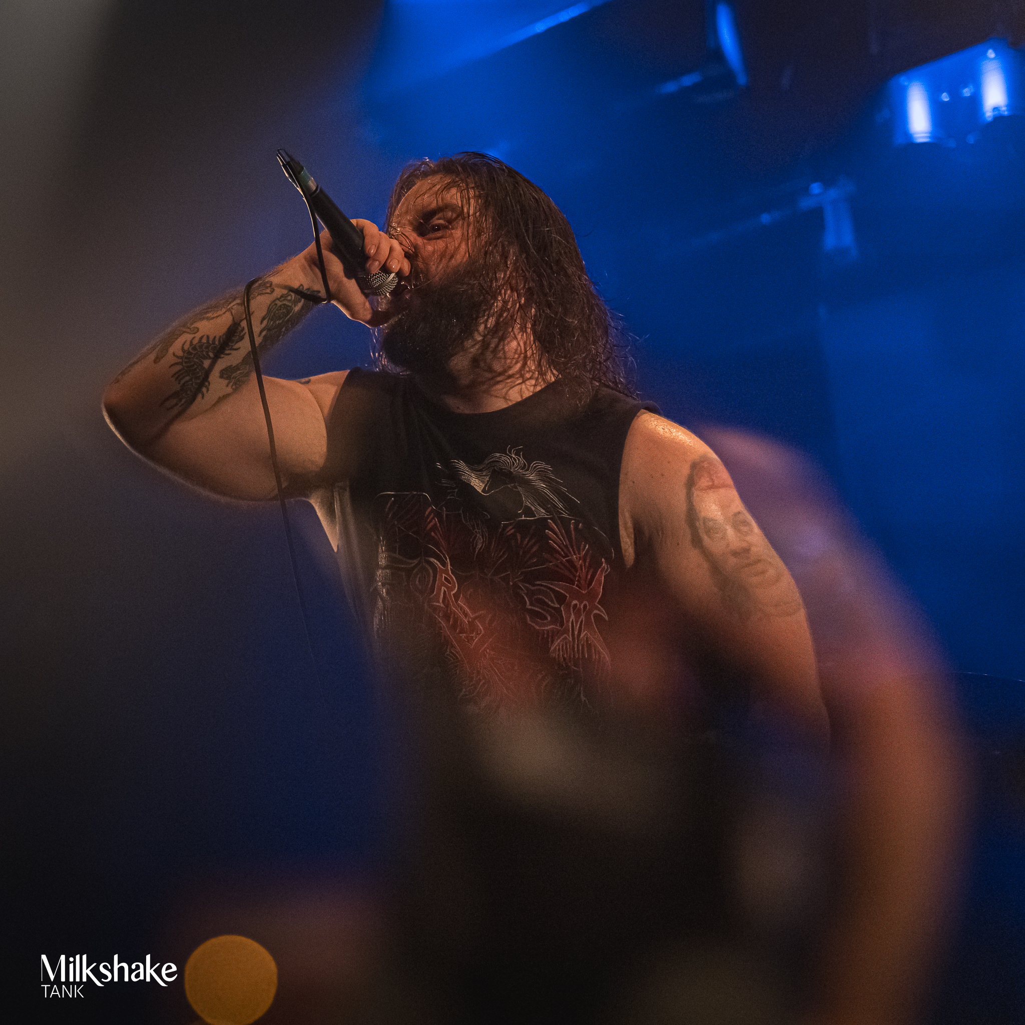 Le chanteur de Sanguisugabogg arrive sur scène avec une remarque audacieuse voir déplacée sur les événements tragiques du Bataclan, déclarant qu’il aurait affronté les terroristes s’il avait été présent. Une déclaration qui divise l’audience, mais qui n’altère en rien l’énergie déployée sur scène. Malgré une salle encore partiellement remplie, les fans répondent présents aux appels de circle pit, rendant l’atmosphère déjà électrique. La musique est brutale et lourde, sans finesse, mais parfaitement en phase avec l’ambiance attendue. Le chanteur exprime son honneur de jouer en ouverture pour les groupes suivants et sa joie de passer la soirée avec le public parisien. Cependant, un petit bémol : la caisse claire domine clairement le son global. Le set se termine en apothéose avec un wall of death demandé par le chanteur, déclenchant un chaos contrôlé dans la fosse.