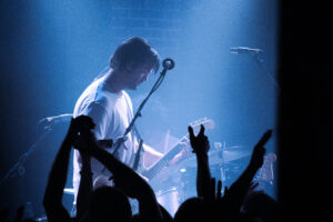Et puis… Turnover. Rien qu’en les voyant monter, la salle explose. Cutting My Fingers Off, et c’est déjà l’unisson, tout le monde chante, moi avec. Sur New Scream, la fosse se met à onduler, ça chante à pleins poumons, ça rigole, c’est la fête. Avec Humming, ça crie dès le départ, ça saute sur le refrain, ça tape dans les mains, c’est impossible de rester immobile. Sur Hello Euphoria, Austin s’éloigne du micro et laisse le public s’époumoner, c’est beau à voir, une vraie communion. Quand arrivent les premières notes de Dizzy on the Comedown, il balance un « Thank you so much for being here tonight, we’re Turnover, it’s our first time back here in five years, so thank you again! », et là, la salle explose encore plus fort.