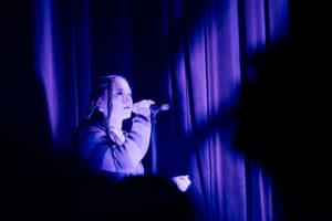 Nature sounds roll in, the stage wrapped in an elegant darkness, the crowd holding its breath for a split second before it erupts the moment everything lights up, right as Tout résonne begins. And it really does resonate, through bodies and walls alike. There are only three of them onstage, but it feels like a thousand. Right from the start, Charline Mignot grabs her audience as if she already knows them. She talks, she laughs, she connects everyone in the room. After the very first song, people are already singing whole lines back at her, like they’d been waiting weeks for this exact moment. There are little pockets of emotion between some tracks. Charline stops, breathes, lets it show, yes, she’s moved to be here. You can feel it hanging in the air, something deeper than the bass vibrating through everyone.