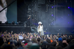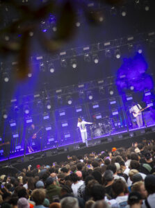 La diva Jorja Smith est très attendue et elle aura délivré une prestation où sa voix incroyable a été impeccable de bout en bout. Son band et ses choristes sont parfaits également. En technique pure, c’était un grand moment, mais je ne suis pas resté jusqu’au bout, car sans doute trop loin, et la configuration festival + distance n’a pas réussi à me captiver jusqu’à la fin. Il manquait un petit côté « destroy » à la Amy Winehouse pour réussir à me retenir tout du long. Mais ce fut un très bon concert.