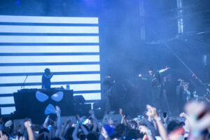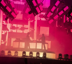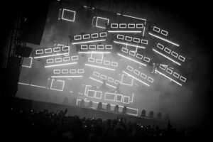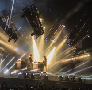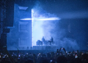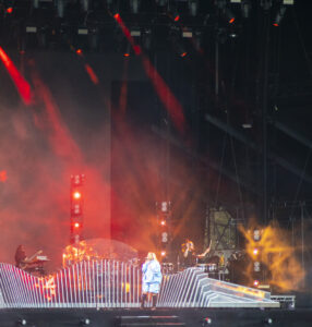Et j’ai envie de dire, comme d’habitude, énoooorme claque dans les gencives dès les premières minutes. La setlist est dingue, les lights n’en parlons pas, les remix/versions live bien vnr, le public est en transe, le rythme du spectacle est d’une efficacité redoutable. Même la crainte de voir la qualité visuelle être amoindrie par le fait d’être en configuration festival est balayée au bout de quelques minutes. Tout est absolument dingue. Que dire des versions live complètement vénères de « Genesis x Phantom » ? Qui ouvre d’ailleurs le set, avec évidemment les lights qui nous balancent une croix dans la face. Du retour en arrière rappelant la bonne époque avec « Tthhee Ppaarrttyy / D.A.N.C.E » ? Mais aussi de l’efficacité du présent avec « Neverender / Safe and Sound / Canon x Love S.O.S. » ?