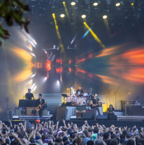 Pour conclure ce festival, on a le droit entre le groupe de rock à papa, vu et revu pour ma part, Queens of the Stone Age. Parmi une marée humaine presque angoissante. Honnêtement, je regarde de loin, très loin, de beaucoup trop loin. Et le constat est identique à la dernière fois que j’ai pu voir le groupe. Oui, c’est bien, oui ce sont des légendes, oui ça joue bien, mais je me fais vite chier. Et regarder le concert à 500 mètres sur un écran n’aide pas. Je file donc voir Bryan’s Magic Tears, qui débarquent sur scène avec une pointe d’ironie : « Bonsoir, nous sommes Queens of the Stone Age ».