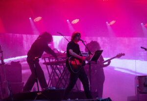 Mais avant Justice je passe faire un tour au concert de The Psychotic Monks & Guests, étonnant… et intéressant ! On assiste à une performance composée expressément pour le festival. En effet, le set exclusif auquel on assiste ce soir est porté par l’association Futur Composé, et voit donc le groupe de post-punk français collaborer avec trois talents issus de trois institutions accueillant des personnes avec un trouble du spectre de l’autisme (autant vous dire que j’ai été touché et intrigué par cela).